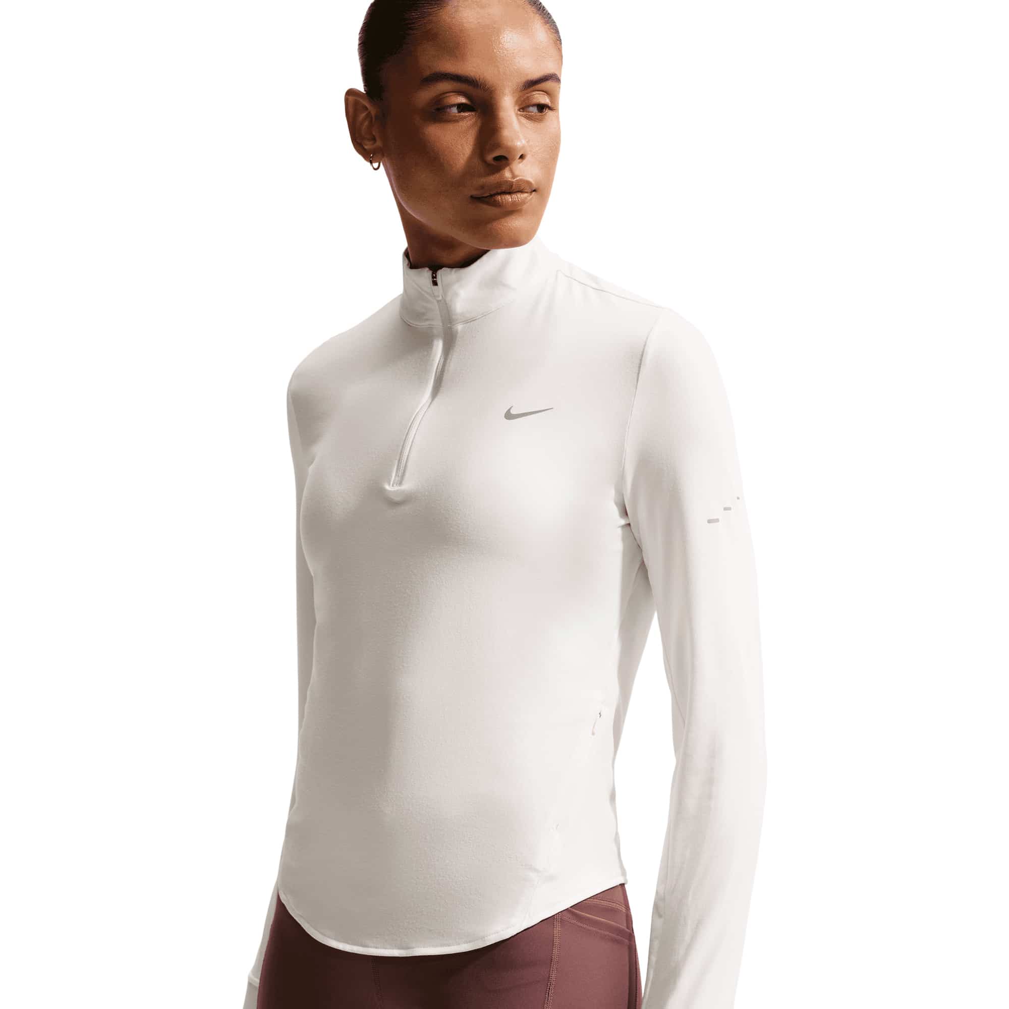 Dieses leichte Swift-Essentials Laufshirt wurde speziell für Läufer:innen entwickelt, die Wert auf maximale Funktionalität und Tragekomfort legen. Der flexible Midlayer schützt nicht nur vor UV-Strahlen, sondern bietet auch eine schweißableitende Dri-FIT-Technologie, die dafür sorgt, dass du beim Training trocken bleibst. Die innovativen Raglanärmel reduzieren die Reibung im Achselbereich und ermöglichen dir ungehinderte Bewegungsfreiheit, damit du dich ganz auf deinen Lauf konzentrieren kannst. Die sportliche, funktionelle Passform ist an der Taille schmaler geschnitten und lässt sich leicht mit anderen Kleidungsstücken kombinieren. Der abgerundete Saum gewährleistet optimale Abdeckung, während die praktischen Daumenöffnungen ein Verrutschen der Ärmel verhindern. Zusätzlich ermöglichen die speziellen Uhrenfenster an den Ärmeln einen schnellen Blick auf die Zeit. In der Reißverschlusstasche an der Seitennaht hast du Platz für Kopfhörer, Schlüssel oder Karten, sodass du alles Wichtige stets bei dir hast. Erlebe das nächste Level deines Laufsports mit diesem durchdachten Laufshirt.