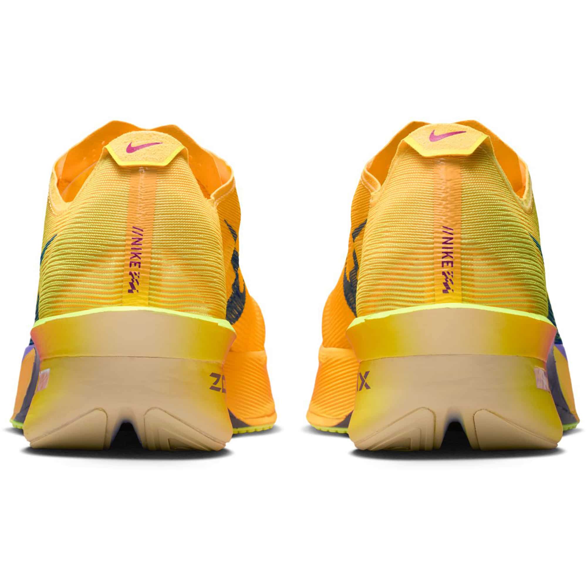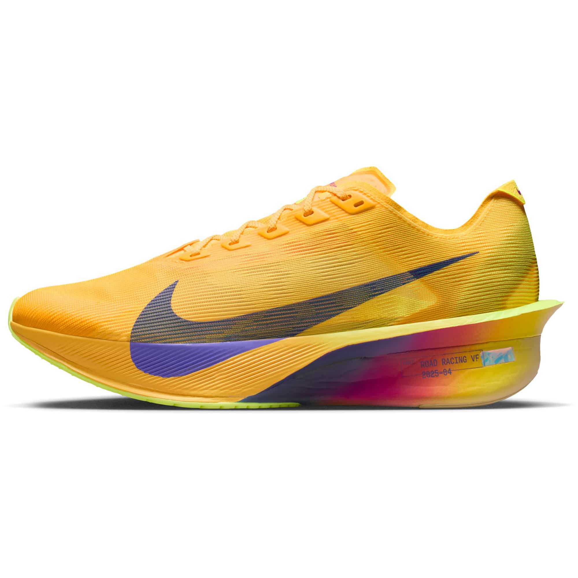 Der Nike Vaporfly 4 ist der ultimative Straßenwettkampfschuh für ambitionierte Läufer, die auf der Jagd nach Bestzeiten sind. Dank überarbeiteter Mittelsohlenkonstruktion mit reduziertem Schaumstoffeinsatz an strategischen Stellen bietet der Schuh eine noch höhere Energierückgabe – bei gleichzeitig reduziertem Gewicht. So läufst du länger effizient und explosiv. Die geschwungene, durchgehende Flyplate aus Carbonfaser wurde intensiv im Labor getestet. Sie sorgt für ein dynamisches Laufgefühl und ermöglicht einen optimalen Leverage-Effekt über Fuß und Knöchel. Die aufgeschäumte Gummi-Außensohle passt sich den Straßenbedingungen flexibel an und bietet eine ideale Kombination aus Traktion, Dämpfung und Strapazierfähigkeit – für geschmeidiges Abrollen und zuverlässigen Grip bei Wettkämpfen oder intensiven Trainingseinheiten.