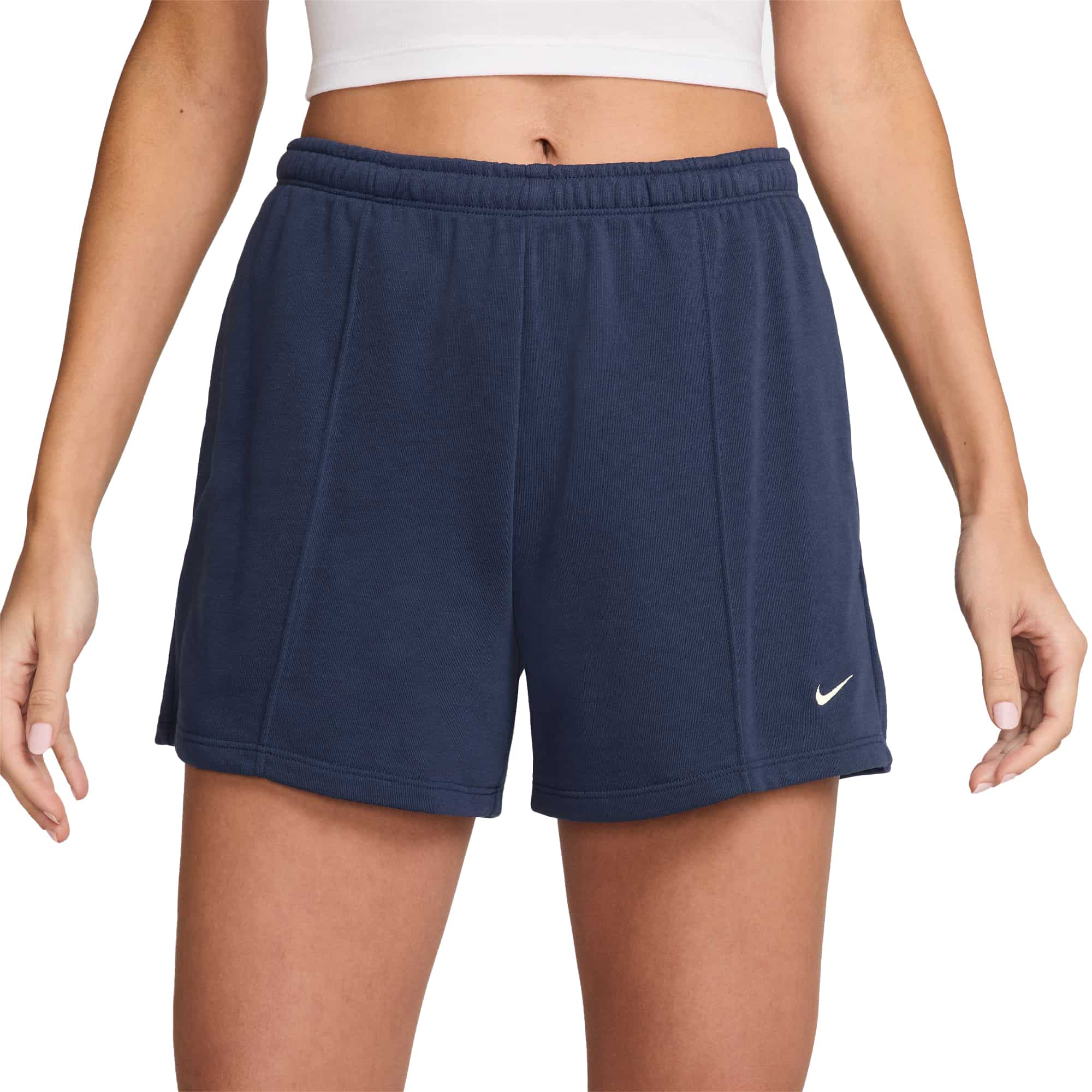 Die Nike Sportswear Chill Terry Shorts überzeugt mit einer leichten, luftigen Qualität und ist ideal für wärmere Temperaturen. Gefertigt aus weichem French-Terry-Material, das zwischen Fleece und Jersey liegt, bietet sie ein besonders angenehmes Tragegefühl – egal ob zu Hause, beim Stadtbummel oder unterwegs. Die lockere Passform mit mittelhohem Bund sorgt für lässigen Komfort, während die dekorativen Nähte auf der Vorderseite dem Design eine stilvolle Note verleihen. Der elastische Bund mit Kordelzug kann klassisch oder umgeschlagen getragen werden. Seitentaschen bieten praktischen Stauraum für kleine Essentials. Ein vielseitiges Basic mit hohem Wohlfühlfaktor – perfekt für entspannte Sommertage.