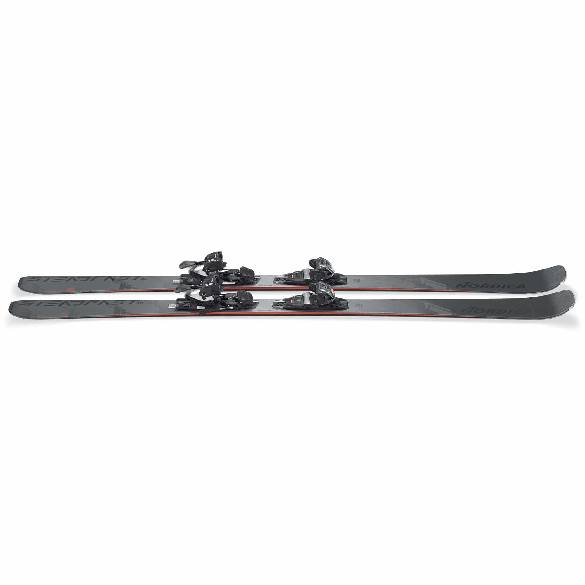 Der Steadfast 80 DC + TP2LT 11 FDT 25/26 von Nordica ist ein vielseitiger All-Mountain-Ski mit Race-Charakter, der auf der gesamten Piste und darüber hinaus überzeugt und sich sowohl auf präparierten Hängen, Buckelpisten, zwischen Bäumen als auch in leichtem Pulverschnee hervorragend fahren lässt. Die Double Core CA-Konstruktion integriert eine dämpfende Elastomer- und Titanallage zwischen zwei Holzkernschichten, wodurch ein geschmeidiges, agiles und fehlerverzeihendes Fahrverhalten entsteht, das Vertrauen und Kontrolle erhöht. Der All-Mountain-Shape in Kombination mit einer ausgewogenen Rocker- und Camber-Geometrie erleichtert das Einleiten von Kurven und ermöglicht zugleich entspanntes Carving. Mit dem Steadfast 80 DC kannst du das Skigebiet in seiner ganzen Vielfalt erleben und dabei maximale Vielseitigkeit, Stabilität und Fahrspaß genießen.
