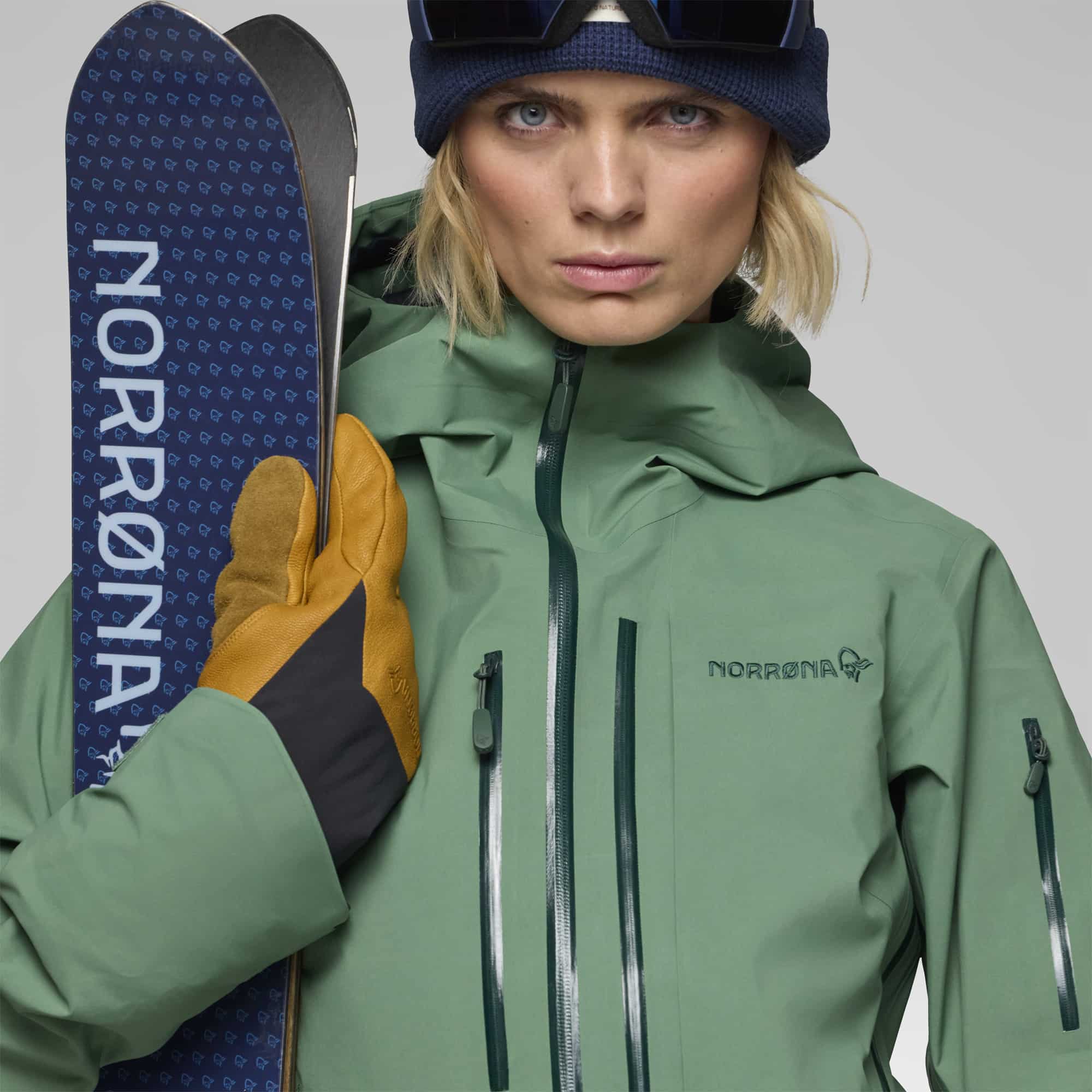 Die Norrøna Lofoten GORE‑TEX Pro Jacke ist eine extrem robuste Freeride-Shell für Damen mit einer langlebigen 3-lagigen GORE-TEX Pro-Membran, die wasserdicht (28.000 mm), winddicht und hoch atmungsaktiv ist. Die ePE-Membran ist besonders leicht, pflegt eine lange Lebensdauer und kommt ganz ohne PFAS aus. Belüftungsreißverschlüsse unter den Armen und an der Brust sorgen für gezielte Luftzufuhr, während die einhändig verstellbare Kapuze über einen Helm passt. Weitere praktische Features sind asymmetrische Ärmelabschlüsse mit Klett, integrierte Handgamaschen, ein abtrennbarer Schneefang und mehrere Taschen (Napoleon-, Schlüsseltaschen). Der technische Schnitt mit vorgeformten Ellbogen und verlängertem Rückenteil bietet maximale Bewegungsfreiheit bei alpinen Einsätzen.