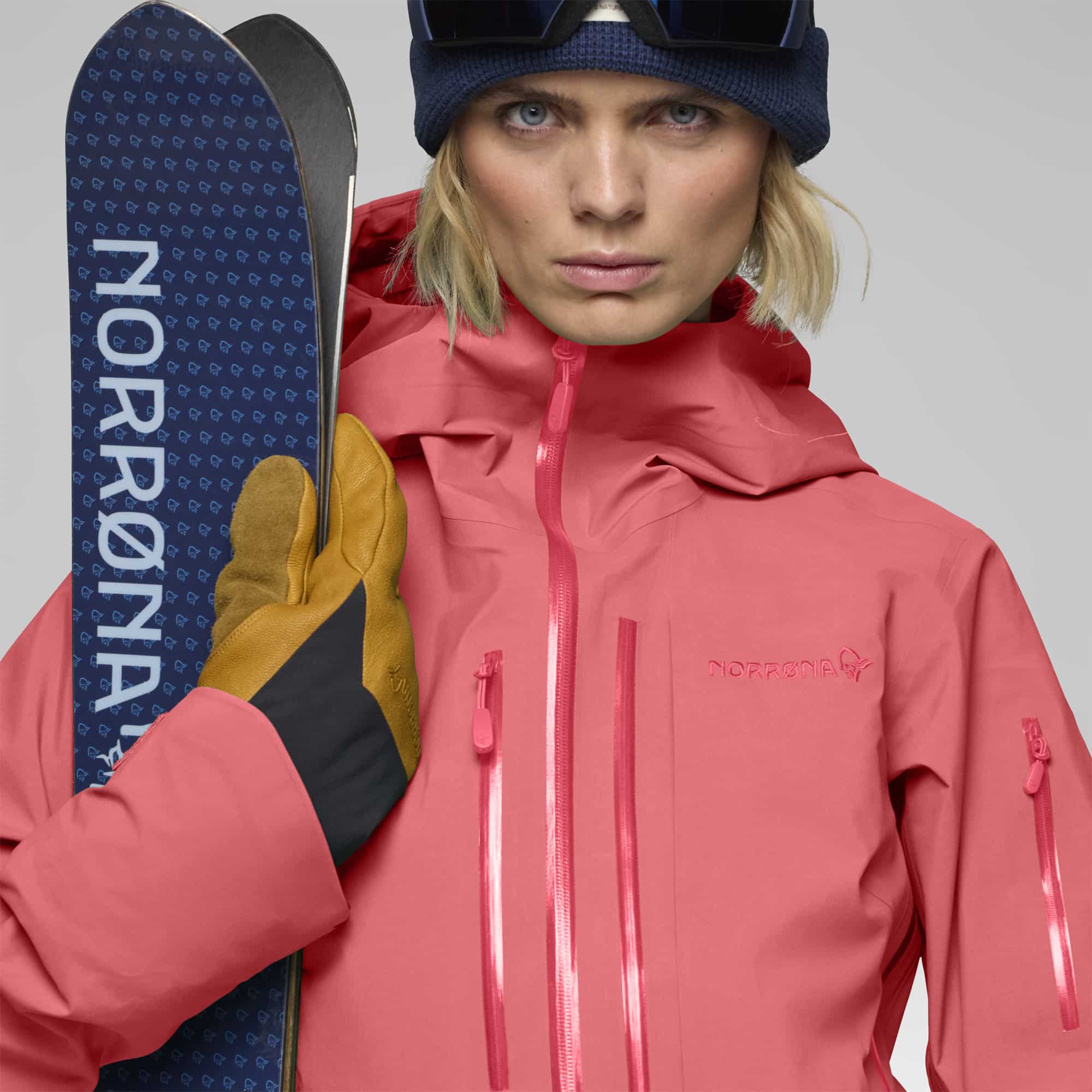 Die Norrøna Lofoten GORE‑TEX Pro Jacke ist eine extrem robuste Freeride-Shell für Damen mit einer langlebigen 3-lagigen GORE-TEX Pro-Membran, die wasserdicht (28.000 mm), winddicht und hoch atmungsaktiv ist. Die ePE-Membran ist besonders leicht, pflegt eine lange Lebensdauer und kommt ganz ohne PFAS aus. Belüftungsreißverschlüsse unter den Armen und an der Brust sorgen für gezielte Luftzufuhr, während die einhändig verstellbare Kapuze über einen Helm passt. Weitere praktische Features sind asymmetrische Ärmelabschlüsse mit Klett, integrierte Handgamaschen, ein abtrennbarer Schneefang und mehrere Taschen (Napoleon-, Schlüsseltaschen). Der technische Schnitt mit vorgeformten Ellbogen und verlängertem Rückenteil bietet maximale Bewegungsfreiheit bei alpinen Einsätzen.