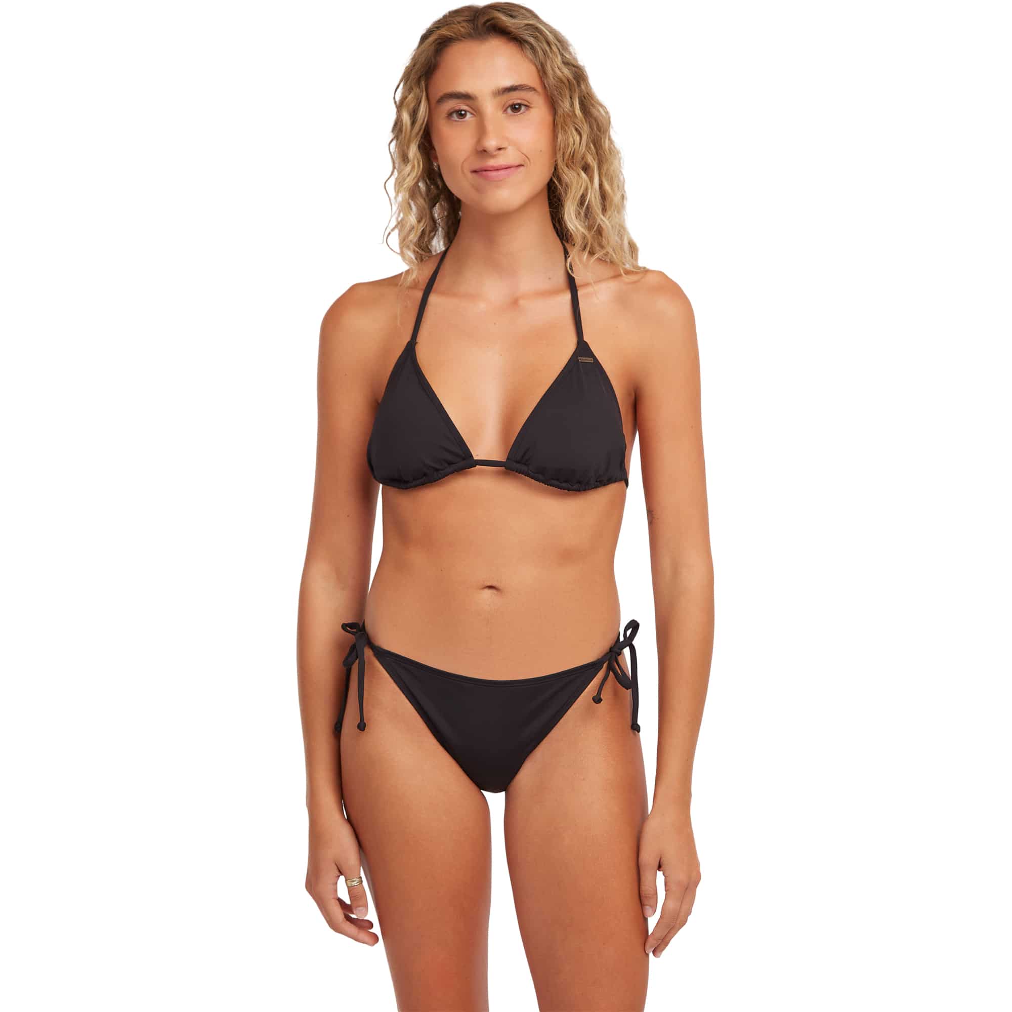 Das Essentials Capri Bondey Bikini-Set von O'Neill ist die perfekte Wahl für alle, die im Wasser Komfort, Stil und eine individuelle Passform genießen möchten, denn das klassische Triangel-Top mit leichtem Halt und frechem Schnitt bietet dank herausnehmbarer Pads und verstellbarer Träger optimale Anpassungsmöglichkeiten, während das mittelhoch geschnittene Höschen mit moderater Abdeckung für ein angenehmes Tragegefühl und eine schmeichelhafte Silhouette sorgt, die spezielle Konstruktion verhindert zudem ein Einschneiden und garantiert auch bei längeren Sessions im Wasser maximalen Komfort, wodurch das Bikini-Set ideal für Strand, Pool und entspannte sowie aktive Tage geeignet ist und Funktionalität mit einem modernen, femininen Look verbindet.