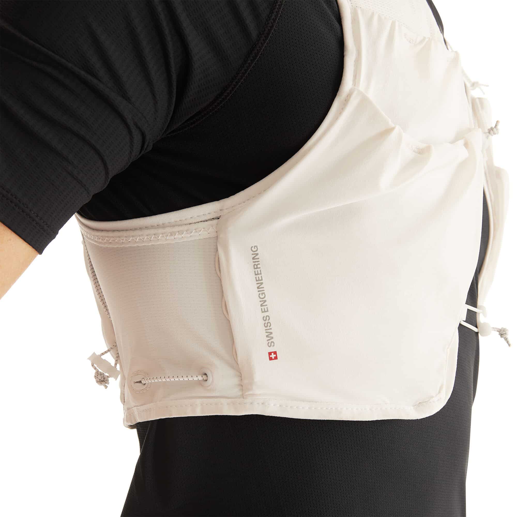 Der Ultra Vest 5L Trinkrucksack ist eine ultraleichte Trail-Running-Weste für kurze bis mittlere Distanzen und wurde von Elite-Trail-Athletinnen und -Athleten entwickelt und getestet, um maximale Performance auf jedem Trail zu bieten. Das atmungsaktive Mesh sorgt für optimale Luftzirkulation und eine präzise, rutschfreie Passform, während strategische Non-Stretch-Zonen störende Bewegungen minimieren und für ein stabiles Laufgefühl sorgen. Zwei passgenaue 500-ml-Hydrapak®-Flaschen sind inklusive und sicher verstaut, sodass unterwegs jederzeit schneller Zugriff auf die Flüssigkeitsversorgung möglich ist. Durch das innovative, anpassbare Verschlusssystem sitzt die Weste körpernah und komfortabel, ohne einzuengen. Mehrere funktionale Taschen bieten Platz für Gels, Wertsachen oder eine leichte Jacke. Zusätzliche Daisy-Chain-Schlaufen ermöglichen die Befestigung von Stöcken oder weiterem Equipment. Reflektierende Details erhöhen die Sichtbarkeit bei schlechten Lichtverhältnissen. Gefertigt aus recycelten Materialien vereint diese Trail-Running-Weste Nachhaltigkeit, Stabilität und durchdachtes Design – ideal für alle, die auf dem Trail Wert auf Leichtigkeit, Komfort und Performance legen.