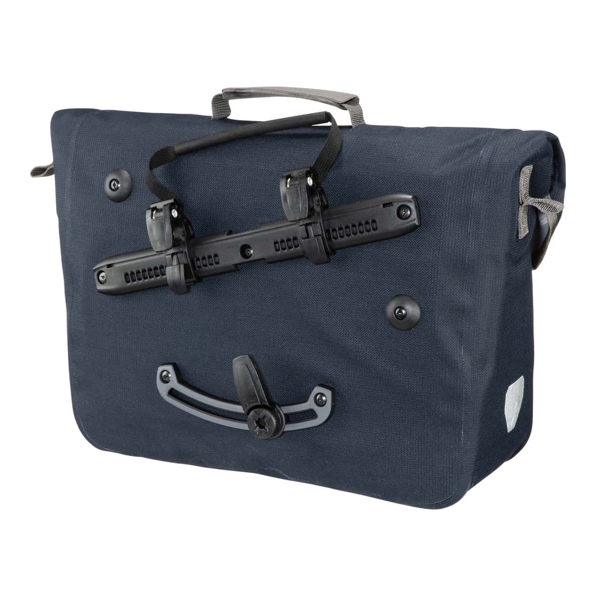 Die Commuter-Bag Two Urban von Ortlieb ist eine praktische Umhänge- und Hinterradtasche im klassischen, modernen Design, die sich hervorragend für den alltäglichen Einsatz eignet. Die Tasche verfügt über das innovative Quick-Lock 2.1 Befestigungssystem, bei dem sich die wesentlichen Komponenten am Fahrradgepäckträger befinden, um eine möglichst flache Taschenrückseite zu ermöglichen. Das geräumige Innenfach mit integriertem Organizer mit Notebookfach bietet viel Stauraum während das besonders robuste CORDURA®/Baumwoll-Mischgewebe mit PU-Beschichtung den Inhalt zuverlässig vor Nässe schützt.