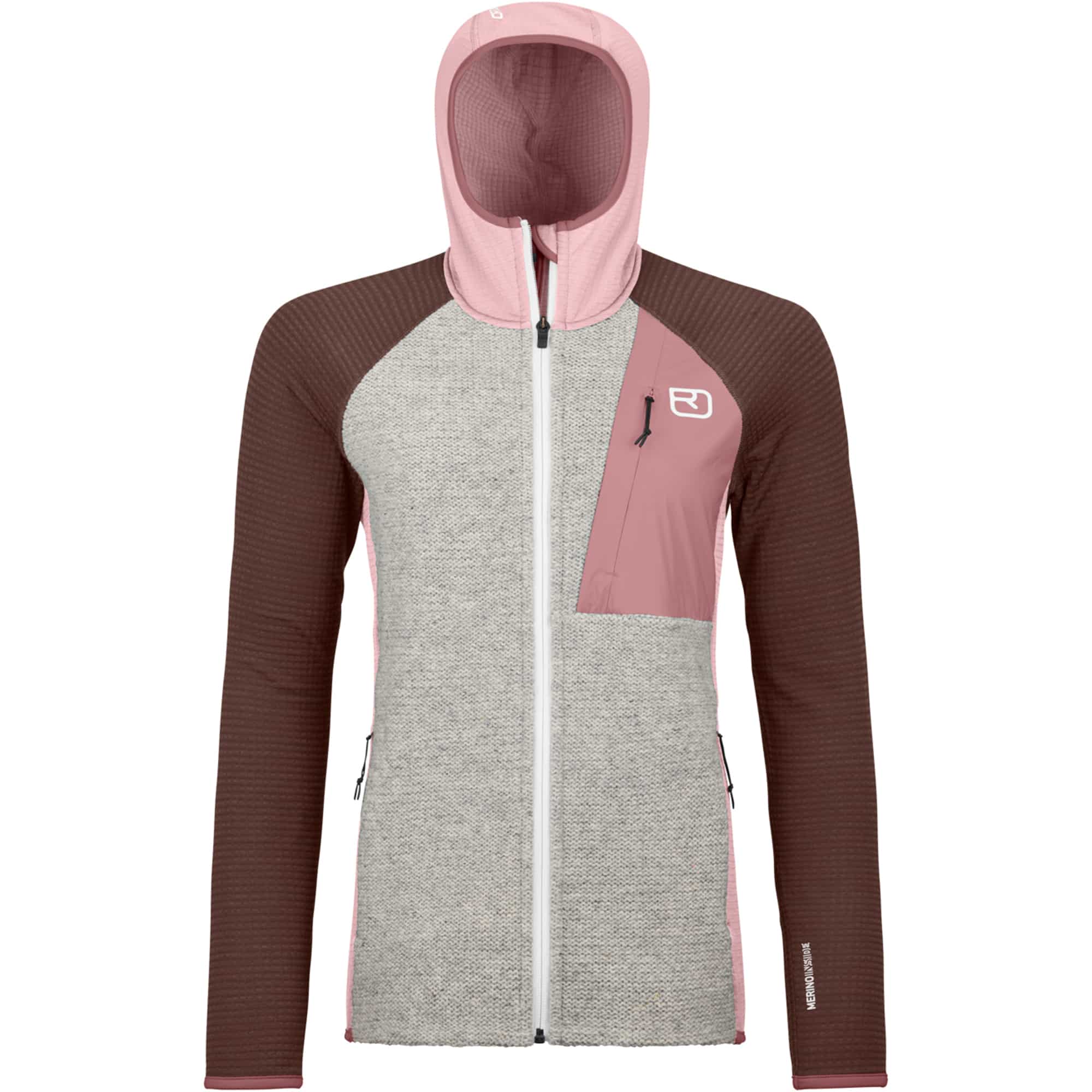 Die Grid Plus Classic Knit Hoody Fleecejacke für Damen von Ortovox ist die perfekte Begleiterin für kalte Freeride-Tage und überzeugt durch Funktion, Wärme und einen modernen Look. Mit ihren traditionell verarbeiteten Wollstrickeinsätzen an der Front bietet sie nicht nur optimalen Schutz vor Wind und Kälte, sondern setzt auch optisch ein besonderes Highlight. Das hochfunktionale Merino Fleece Grid Plus Material an den Armen sorgt dank seiner gitterartigen Struktur für hervorragende Belüftung in anstrengenden Passagen und hält dich gleichzeitig zuverlässig warm – bei minimalem Gewicht. Die weiche Merinowolle auf der Innenseite garantiert ein angenehmes Tragegefühl und wirkt von Natur aus feuchtigkeits- und temperaturregulierend. Zwei praktische Seitentaschen bieten Platz für Kleinigkeiten, während in der abgesetzten Brusttasche Handy, Schlüssel oder Geld sicher verstaut sind. Eine eng anliegende Kapuze sowie elastische Ärmelabschlüsse schließen die Wärme zuverlässig ein und halten die Kälte draußen. Nachhaltig produziert, klimaneutral in Europa gefertigt und ausgestattet mit langlebigen Materialien, ist der Fleece Grid Plus Classic Knit Hoody der klassische Freeride-Style modern interpretiert – ein vielseitiges Lieblingsteil für den Winter.