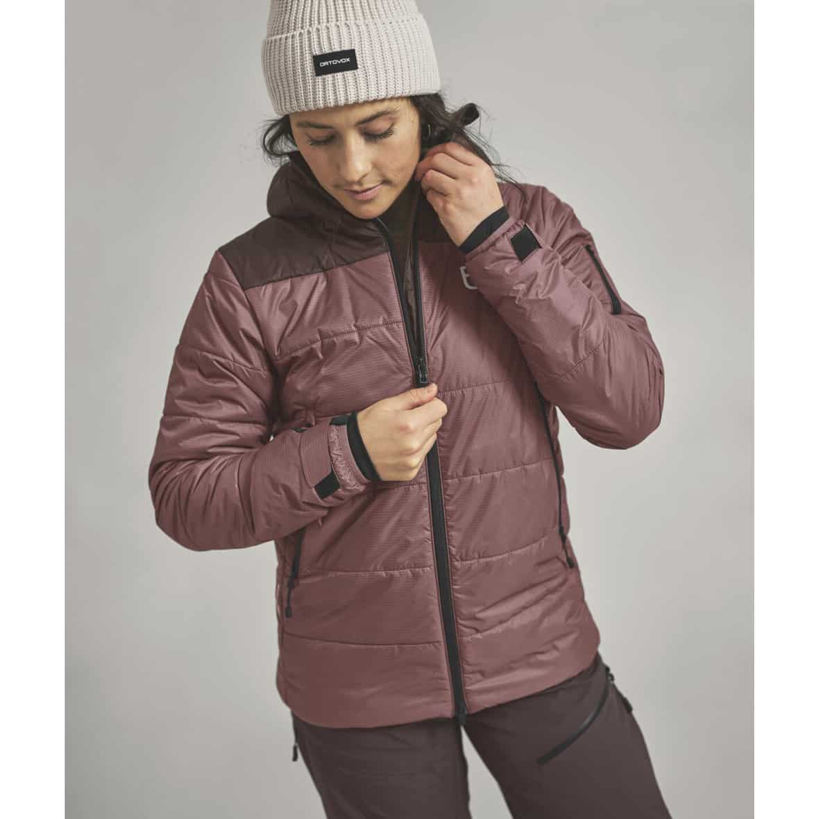 Die Swisswool Zinal Jacket von Ortovox ist die wärmste Isolationsjacke für Damen und wurde speziell für Freeriderinnen entwickelt, die auch bei tiefsten Minusgraden nicht auf Performance verzichten wollen. Ihr robustes PERTEX® QUANTUM Außenmaterial schützt zuverlässig vor Wind und Nässe, während die hochwertige Swisswool Black-Isolation – die seltene Wolle der schwarzen Schafe aus den Schweizer Alpen – für wohlige Wärme sorgt. Durch den Einsatz unterschiedlicher Grammaturen ist die Wärmeleistung optimal auf den Körper angepasst: 150 g/m² an der Front und im oberen Ärmelbereich bieten maximale Isolierung, während 120 g/m² in Kapuze und unteren Ärmeln für Bewegungsfreiheit und geringes Volumen sorgen. Für zusätzlichen Schutz sorgen weitenregulierbare Ärmelabschlüsse mit elastischen Innenbündchen, die bequem über die Handschuhe passen, sowie ein hoher Kragen mit weichem Merino Mesh-Futter, das den Hals angenehm warmhält. Ein weiteres Highlight ist das Rückenfutter aus 100 % Merinowolle, das für natürlichen Klimakomfort sorgt und gleichzeitig Bewegungsfreiheit bei sportlichen Schwüngen garantiert. Die Swisswool Zinal Jacket ist nicht nur funktional, sondern auch nachhaltig: Sie ist PFC-frei, klimaneutral und setzt auf nachwachsende Rohstoffe in der Isolation. Damit ist sie die perfekte Wahl für alle Freeriderinnen, die Wert auf Performance, Wärme und Umweltbewusstsein legen.