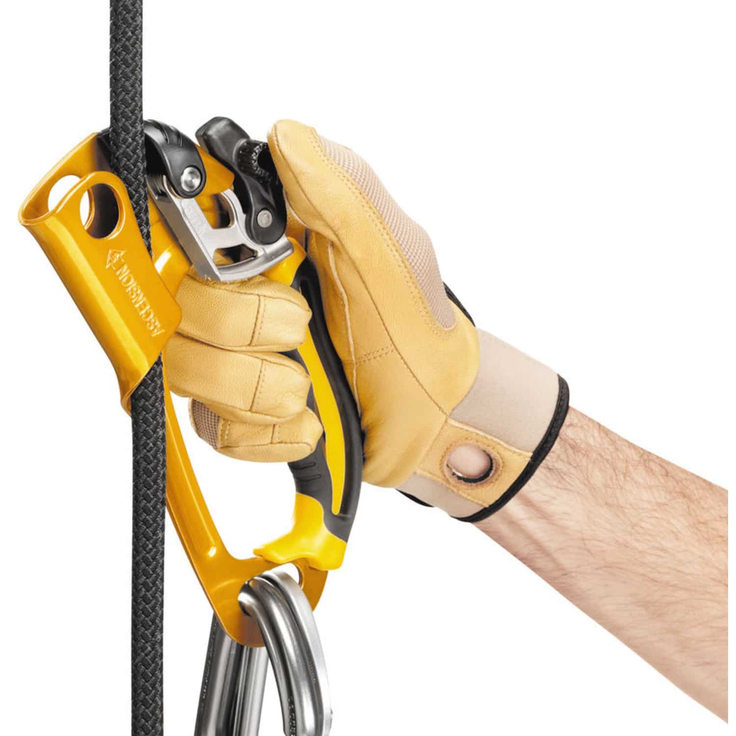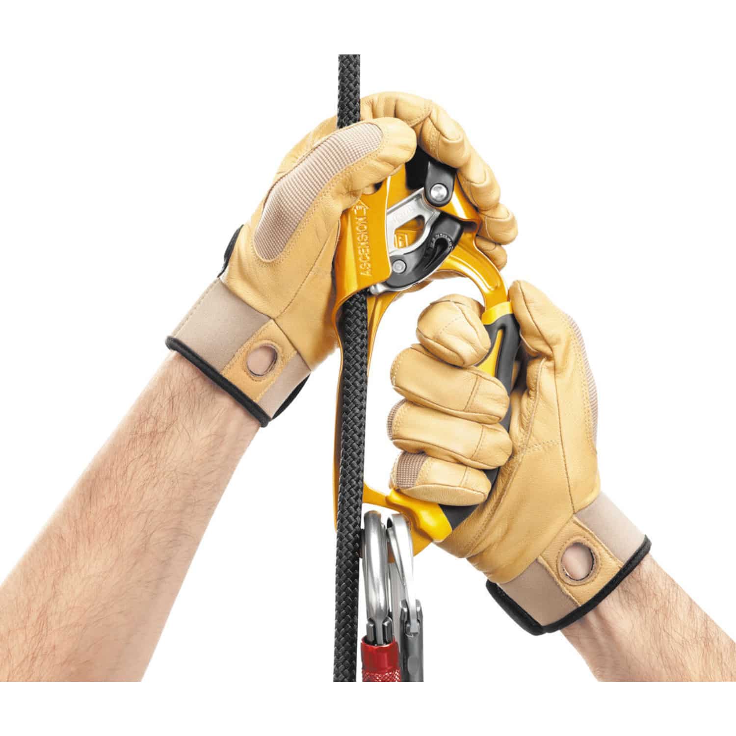 Die für den Aufstieg am Seil konzipierte Ascension-Handsteigklemme von Petzl verfügt über einen ergonomisch geformten Griff, um den Komfort zu erhöhen und die Effizienz beim Ziehen mit einer oder mit beiden Händen zu verbessern. Dank der großen Öffnung ist der Griff auch mit dicken Handschuhen gut zu fassen. Der komplett in den Körper der Seilklemme integrierte Entriegelungshebel verhindert ein Hängenbleiben effektiv. Der gezahnte Klemmnocken mit Reinigungsschlitz ermöglicht eine optimale Funktion bei allen Bedingungen wie ein vereistes oder verschlammtes Seil. Die Steigklemme verfügt über eine große Öse im unteren Bereich zum Einhängen von zwei Karabinern für Verbindungsmittel und Trittschlinge.
