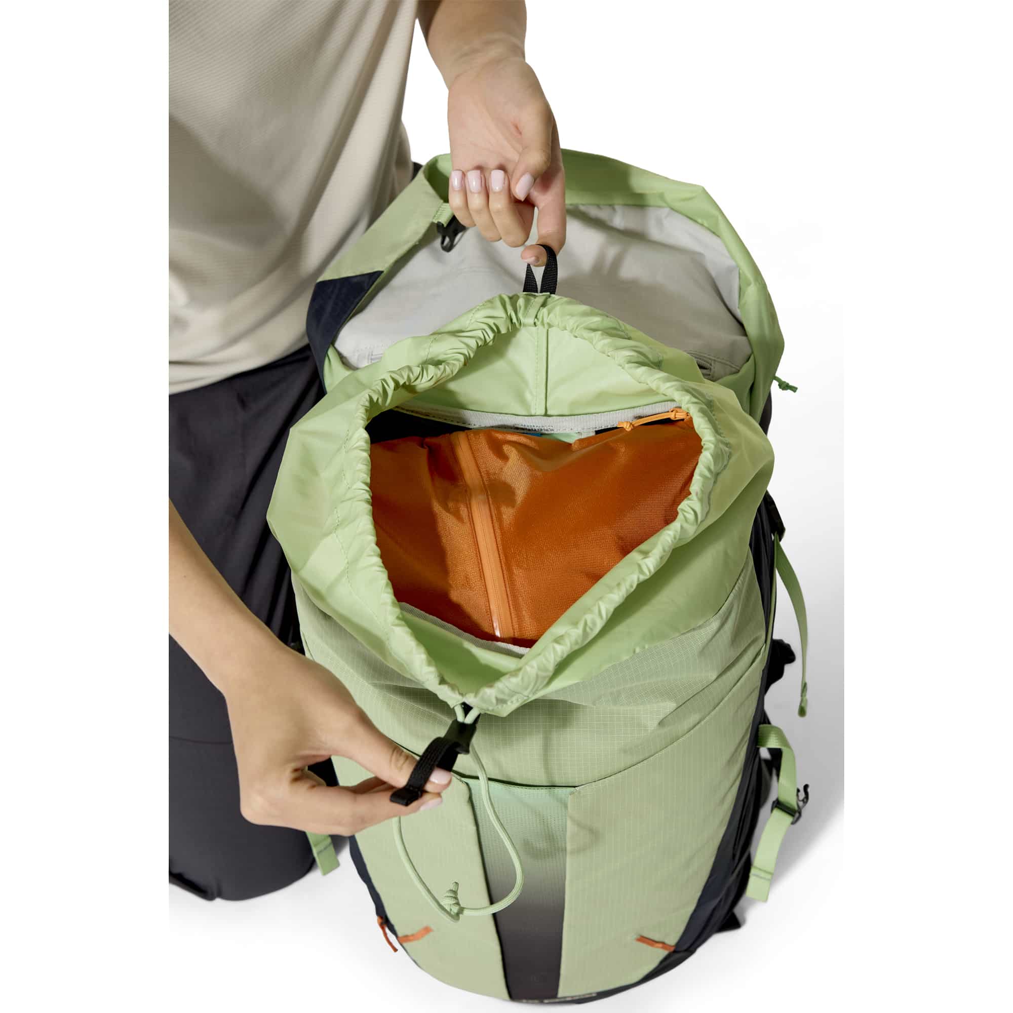 Der Airox 28 ND Damen Wanderrucksack ist ein leichter, atmungsaktiver Daypack mit schmaler Passform, der für anspruchsvolle Tagestouren, Hiking und Adventure Travel bei warmen Temperaturen entwickelt wurde. Das AEROFIT™ Netzrücken-System mit gespanntem Mesh sorgt für optimale Belüftung und ein trockenes Tragegefühl, während die ergonomische Konstruktion das Gewicht effizient verteilt und hohen Komfort bietet. Perforierte Schultergurte mit Brusttasche und Soft-Flask-Fach erhöhen die Funktionalität, ergänzt durch einen asymmetrischen Reißverschluss für schnellen Zugriff. Elastische Seitentaschen und diverse Innen- und Außentaschen bieten durchdachten Stauraum. Trekkingstöcke lassen sich per Bungee-System befestigen, eine integrierte Trinkblasenaufnahme ermöglicht freihändige Hydration und eine herausziehbare Regenhülle schützt bei schlechtem Wetter. Der verstellbare Hüftgurt mit Taschen sorgt für Stabilität, während robustes Ripstop-Nylon Langlebigkeit garantiert und das kompakte Design maximale Bewegungsfreiheit auf dem Trail bietet.