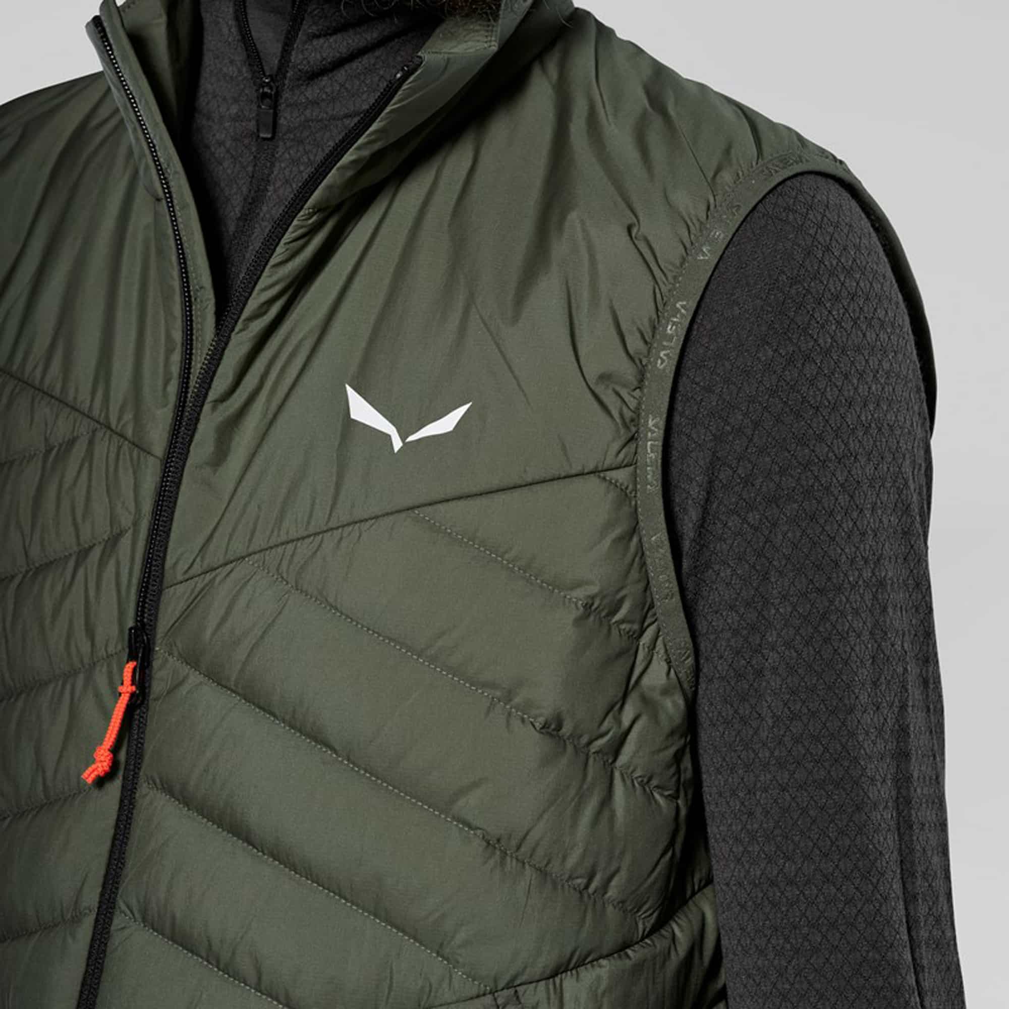 Die Salewa Brenta Herren Daunenweste ist eine leichte, wind- und wasserabweisende Weste, konzipiert für vielseitige Einsätze bei kalten Bedingungen. Das robuste Nylon-Außenmaterial mit DWR-Finish schützt vor Nässe, während daunendichter Taft innen für Komfort sorgt. Ergonomisch vorgeformte Ärmel, ein isolierter Stehkragen und elastische Abschlüsse optimieren den Wärmerückhalt. Die Daunenweste lässt sich klein verpacken und eignet sich sowohl als äußere Schicht als auch als isolierende Midlayer unter einer Hardshell. Zwei Reißverschlusstaschen bieten zusätzlichen Stauraum.