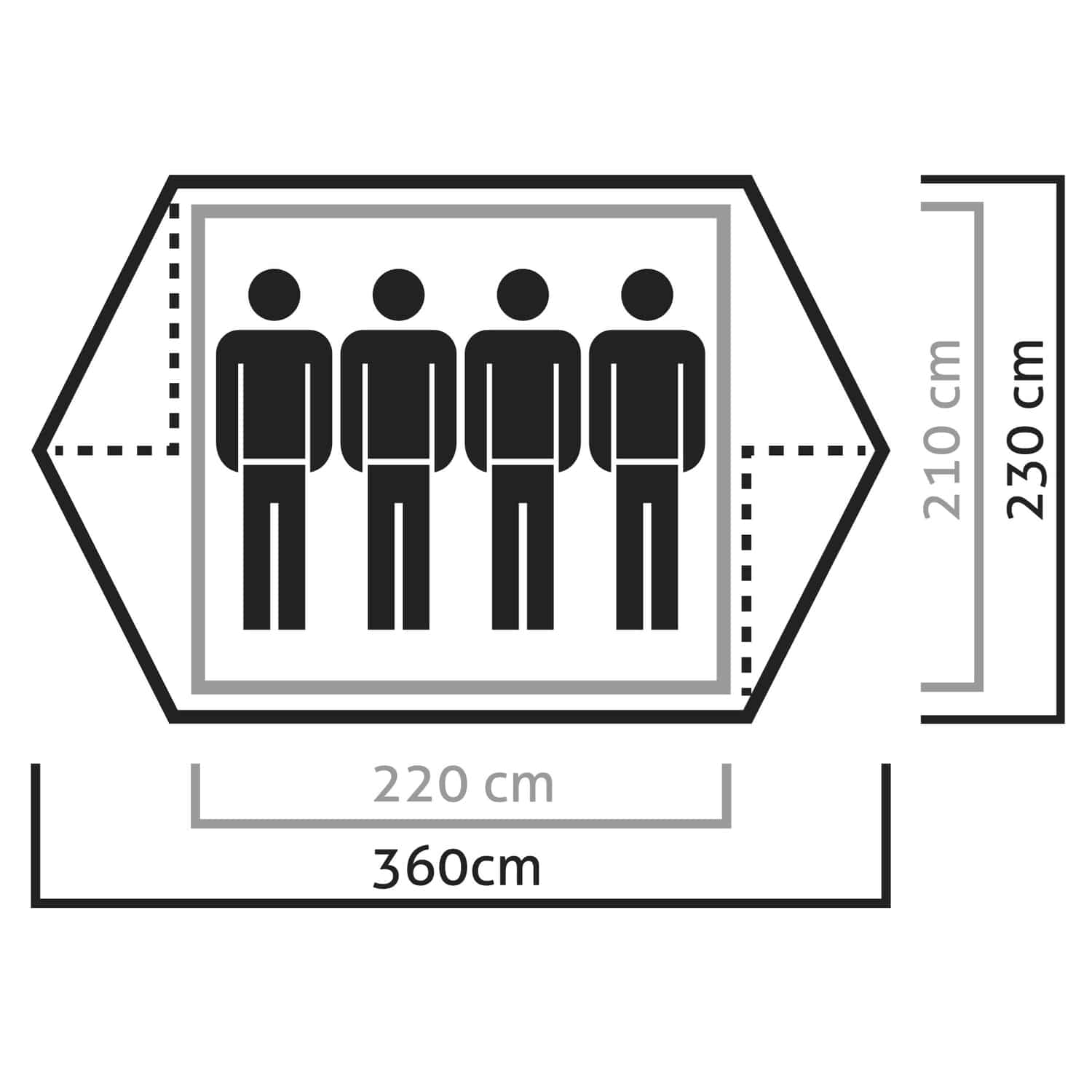 - Außenzelt: 100% Polyester/ Innenzelt: 100% Polyester/ Boden: 100% Polyamid/ Verstärkungen: 100% Polyurethan