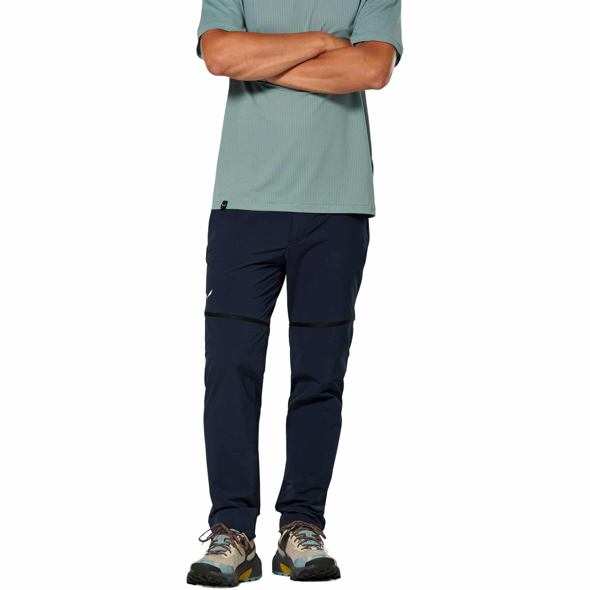Die Salewa Pedroc 3 Durastretch 2-in-1 Zip-Off-Hose für Herren ist die ideale Wahl für anspruchsvolle Speed-Hiking-Touren und aktive Outdoor-Abenteuer. Die superleichte Softshellhose überzeugt mit atmungsaktivem, schnelltrocknendem Durastretch-Material und einer sportlichen Passform für maximale Bewegungsfreiheit, während die PFAS-freie DWR-Imprägnierung zuverlässigen Schutz vor leichtem Regen bietet. Durch die praktischen abnehmbaren Hosenbeine lässt sich die funktionale Wanderhose im Handumdrehen in luftige Shorts verwandeln. Der flache Bund mit innenliegendem Kordelzug sorgt für optimalen Sitz, und durchdachte Details wie zwei unauffällige Reißverschlusstaschen sowie eine zusätzliche Meshtasche bieten sicheren Stauraum. Dadurch überzeugt diese leichte, vielseitige Outdoorhose mit hoher Flexibilität, Komfort und Performance bei jeder Tour.