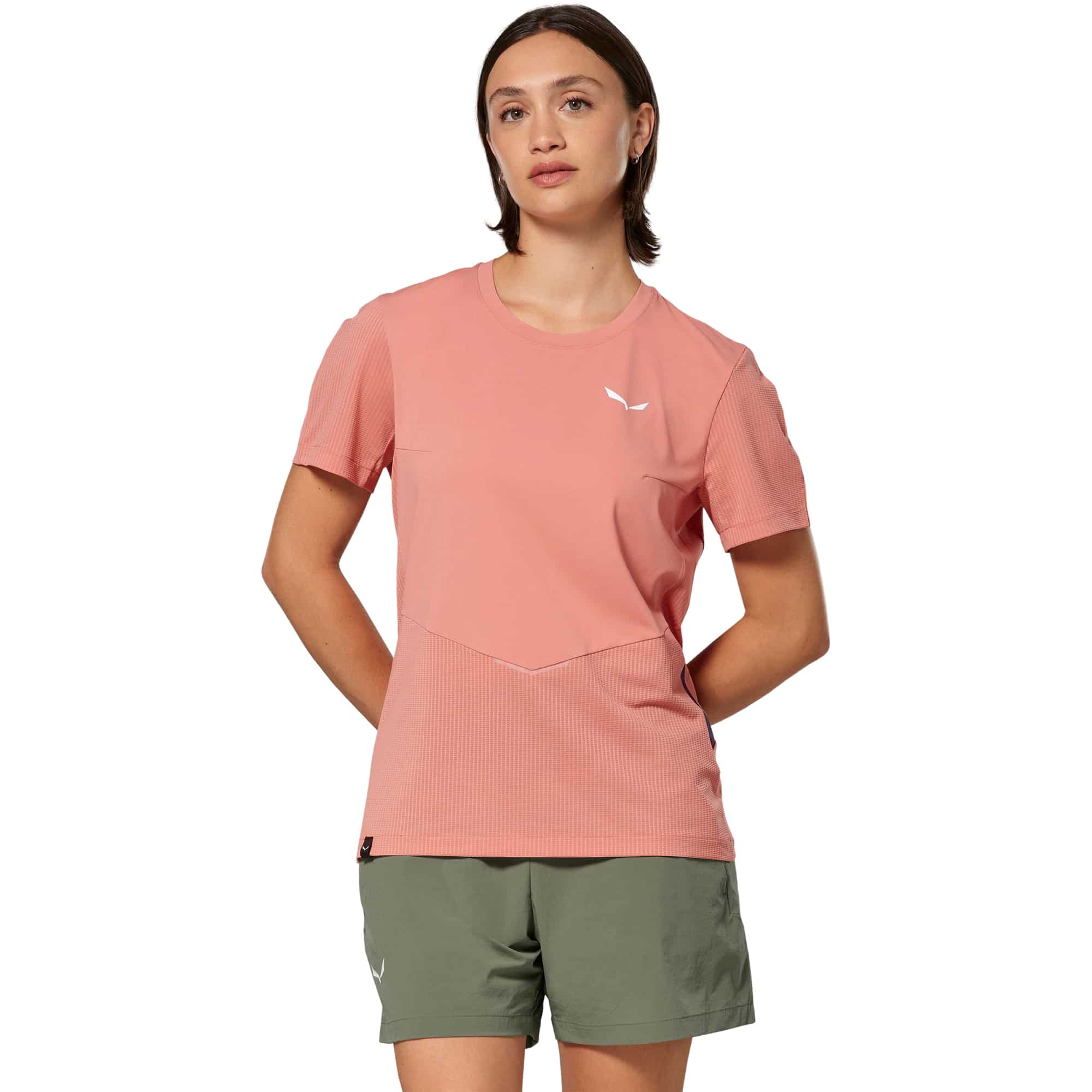 Das Pedroc Dry’Ton Hybrid Damen T-Shirt von Salewa ist ein leichtes, funktionales Baselayer für bewegungsintensive Aktivitäten wie Trailrunning, Speed Hiking oder sportliche Touren. Das Bodymapping-Design kombiniert feuchtigkeitsregulierende, elastische Materialien mit strategisch platzierten Mesh-Einsätzen, die für gezielte Belüftung und ein angenehm trockenes Tragegefühl sorgen. Das Material leitet Schweiß effizient ab und unterstützt so auch bei hoher Belastung ein stabiles Körperklima. Mit seinem athletischen Schnitt, dem geringen Gewicht und den dezenten reflektierenden Details eignet sich das Shirt ideal für dynamische Einsätze bei Tag und Dämmerung.