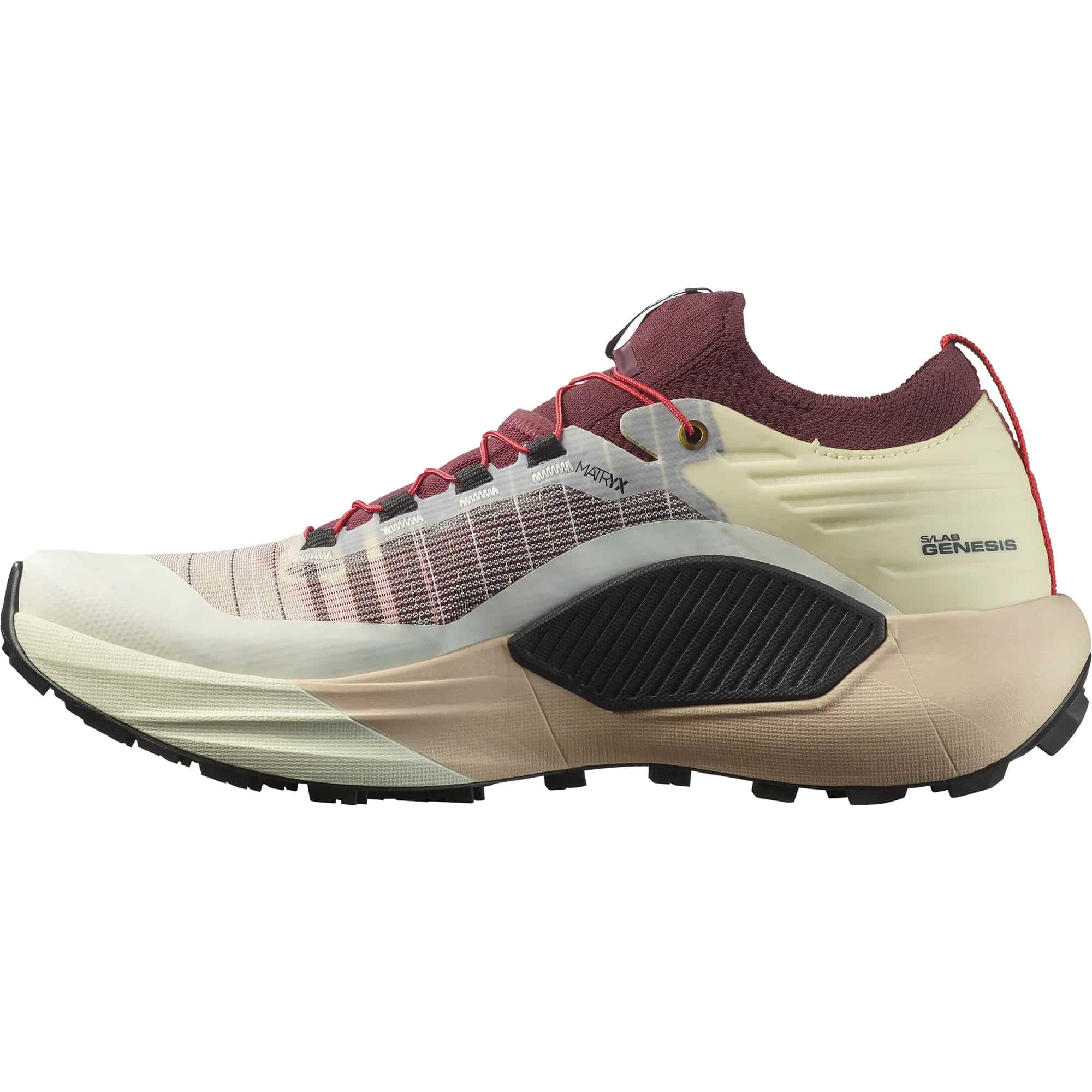 Der Salomon S/Lab Genesis ist ein vielseitiger Trailrunningschuh, der auf verschiedensten Untergründen für zuverlässigen Halt und optimalen Schutz sorgt. Die All Terrain Contagrip®-Außensohle bietet sicheren Grip auf nassen, trockenen und harten Oberflächen, während die leichte optiFOAM-Zwischensohle für gedämpfte, kraftvolle Schritte sorgt. Das robuste Matryx®-Obermaterial kombiniert Kevlar®-Fasern mit technischem Garn, um Abriebfestigkeit, Atmungsaktivität und Leichtigkeit zu gewährleisten. Für präzisen Sitz sorgt die EndoFit™-Konstruktion, ergänzt durch eine Schnürsenkeltasche für das Quicklace™-Schnürsystem. Zusätzlichen Schutz bieten eine Zehenschutzkappe, eine integrierte Gamasche gegen Schmutz und ein Polster im Mittelfußbereich. Das profeelFILM-Dämpfungselement vermittelt ein geschmeidiges und stabiles Laufgefühl auf anspruchsvollem Gelände. Der S/Lab Genesis ist ideal für Trailrunner, die einen robusten und komfortablen Schuh für technische Trails und lange Läufe suchen.