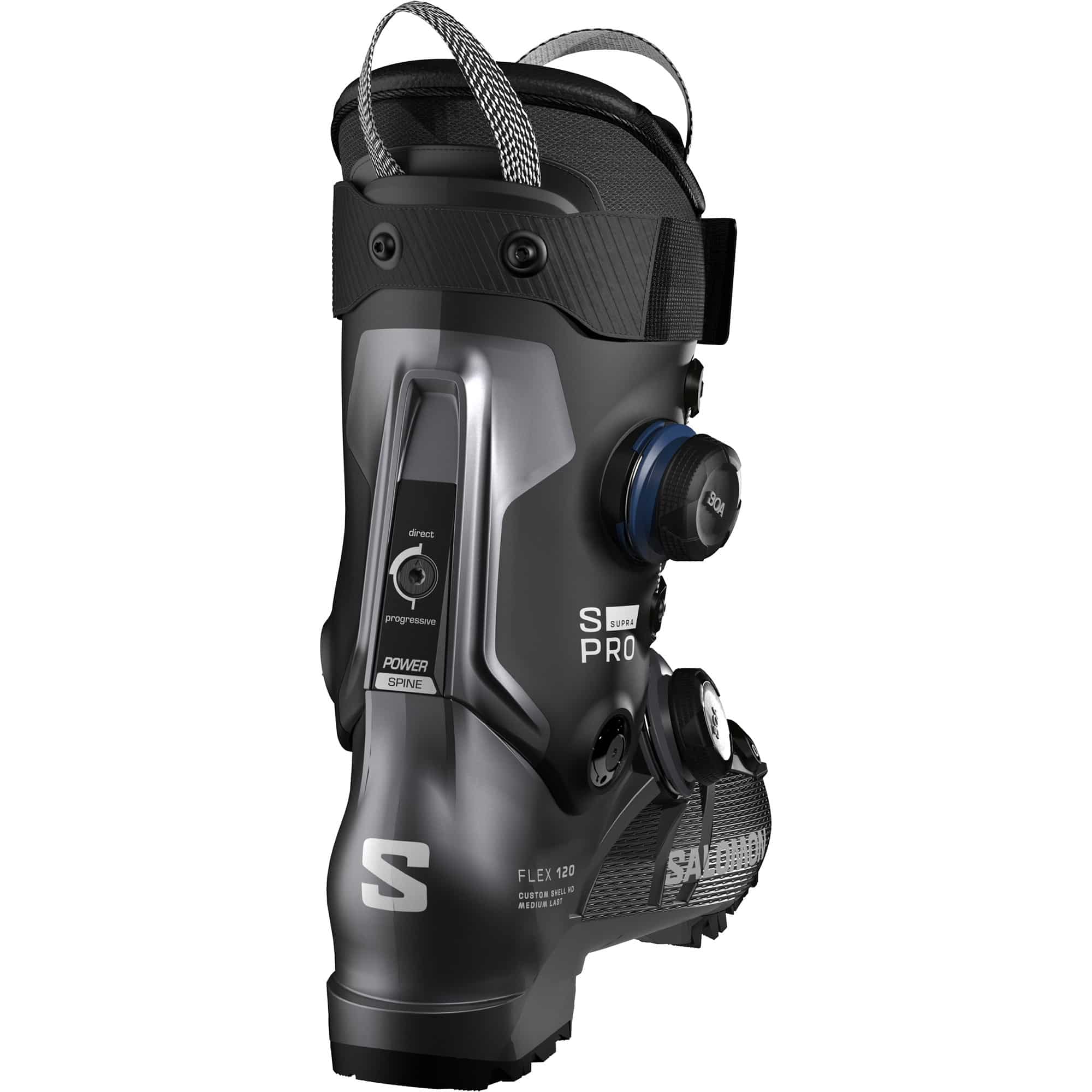 Der Salomon S/Pro Supra Dual BOA 120 25/26 ist ein präzise justierbarer Skischuh für Fortgeschrittene, der dank des Dual BOA®-Fit-Systems mit zwei Drehverschlüssen optimale Passform und Unterstützung bietet: präziser Komfort im Bereich der Unterschale und stabiler Halt am Schaft sorgen für verbesserte Performance auf jeder Piste. Mit einem Gewicht von 1870 g pro Schuh, mittelbreiter Leiste, Gripwalk-Kompatibilität und hartem Flex von 120 ist er auf Kontrolle und Kraftübertragung ausgelegt. Die Custom Shell™ HD ermöglicht schnelle Anpassung von Schale und Schaft, während sensiFIT™ und Exowrap™ für einfache Handhabung und präzisen Sitz sorgen. Power Spine am Schaft liefert progressiven Flex und Rebound, das Light 2-Fußbett sowie der My Exowrap™ 4D Perf-Innenschuh garantieren komfortable Fußumhüllung und präzises Lenken. Die Custom Zunge ist vollständig anpassbar (+/– 8 mm), der elastische Vorderfußgurt fixiert den Fuß sofort, und vormontierte Gripwalk-Sohlen erhöhen Laufkomfort und Grip. Zusätzlich lassen sich alle Schnallen, Zahnscheiben und der Strap individuell anpassen, der 6 mm hintere Spoiler verstärkt die Kraftübertragung.