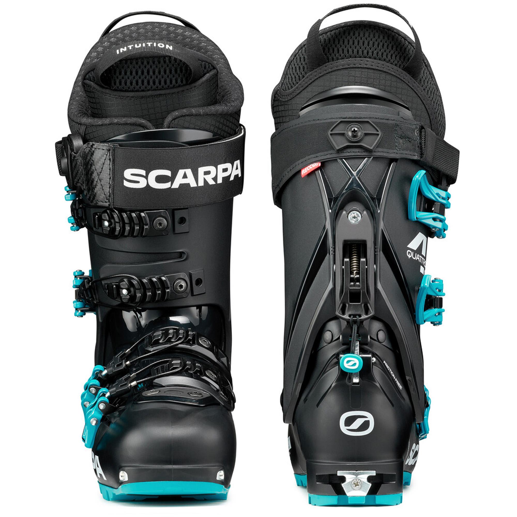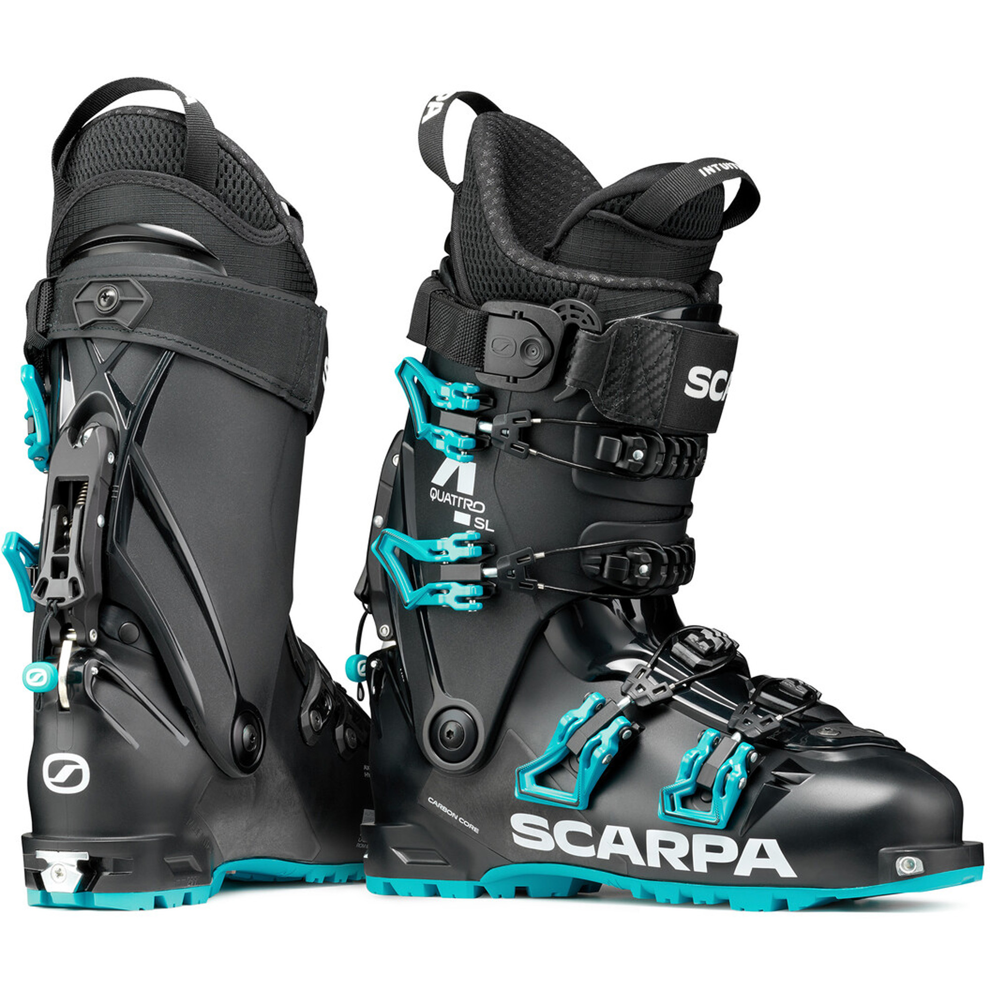 Der Scarpa 4-QUATTRO SL ist ein vielseitiger Hybrid-Skischuh für Skitouren und Abfahrt, der mit einem sportlichen Flex von 120 überzeugt und sich als echter Ganztagesschuh für ambitionierte Skifahrer positioniert. Er richtet sich insbesondere an Abfahrtsläufer, die den Einstieg ins Skitourengehen suchen, dabei aber weder auf alpine Performance noch auf Komfort verzichten möchten – egal ob auf oder abseits der Piste. Als einer der leichtesten Hybrid-Skischuhe seiner Klasse ist der 4-QUATTRO SL mit allen gängigen Skitourenbindungen sowie GripWalk-Abfahrtsbindungen kompatibel. Die Schale aus Pebax® Rnew®, einem Material aus nachwachsenden Rohstoffen, kombiniert mit der innovativen Carbon Core Technologie, sorgt für eine direkte und präzise Kraftübertragung vom Fuß auf den Ski. Der umspritze Carbon-Einsatz erhöht Kontrolle und Stabilität selbst unter anspruchsvollsten Bedingungen und unterstützt eine kraftvolle, dynamische Abfahrt. Der neu entwickelte Speed Lock 4 Ski-/Gehmechanismus aus verstärktem Aluminium gewährleistet optimale Performance im Freeride-Einsatz. Der Wechsel zwischen Geh- und Skimodus gelingt schnell und intuitiv über einen ergonomischen Hebel mit Zugschlaufe, der auch mit Handschuhen einfach zu bedienen ist. Das Verschlusssystem mit vier leichten Magnesiumschnallen bietet dank mikrometrischer Verstellung und Stahlseilen eine gleichmäßige Druckverteilung bei geringem Gewicht. Ergänzt wird es durch einen PVC-freien Powerstrap, der für sicheren Halt am Schienbein sorgt und mit integrierter RECCO-Technologie zusätzliche Sicherheit im alpinen Gelände bietet. Im Inneren überzeugt der 4PRO FLEX SL Innenschuh von Intuition, der vollständig thermoverformbar ist und sich optimal an den Fuß anpasst. Der geschlossenzellige Schaum gewährleistet hohe Wärmeisolation und langanhaltenden Komfort, während das Ortholite-Fußbett aus recyceltem Material einen nachhaltigen Akzent setzt. Hergestellt in Asolo, Italien, steht der Scarpa 4-QUATTRO SL für höchste Verarbeitungsqualität – sein volles Potenzial entfaltet er durch eine individuelle Thermoanpassung bei einem zertifizierten SCARPA-Thermoformer.
