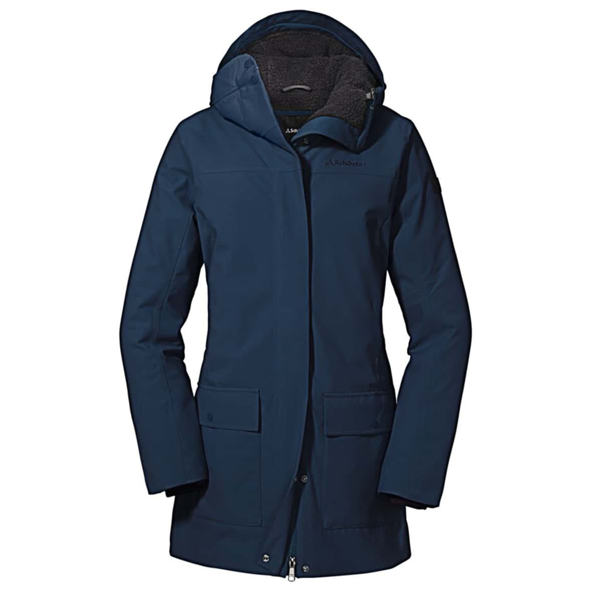 Der INS. Parka Rotterdam L von Schöffel ist eine funktionale Allwetterjacke. Das beigefarbene Teddy-Innenfutter der langen Jacke sticht hervor und wärmt gleichzeitig. Der Parka ist nicht nur wasser- und winddicht, sondern ebenso atmungsaktiv. Zwei Pattentaschen mit Druckknopf bewahren alles auf, was man schnell zur Hand haben möchte. Handstulpen wärmen die Handgelenke. Der abgedeckte Frontreißverschluss und sichtbar platzierte Knöpfe am Kragen setzen modische Akzente.