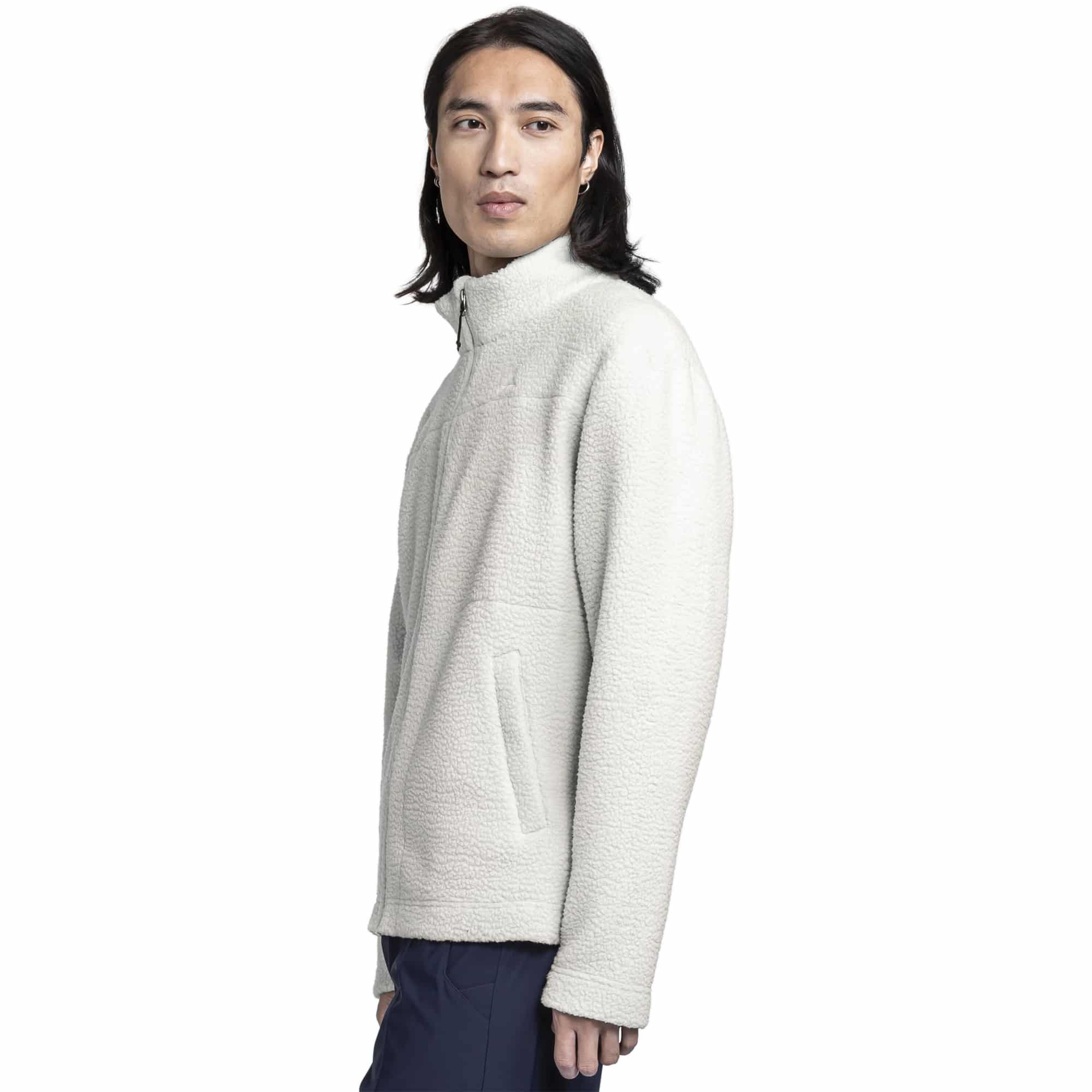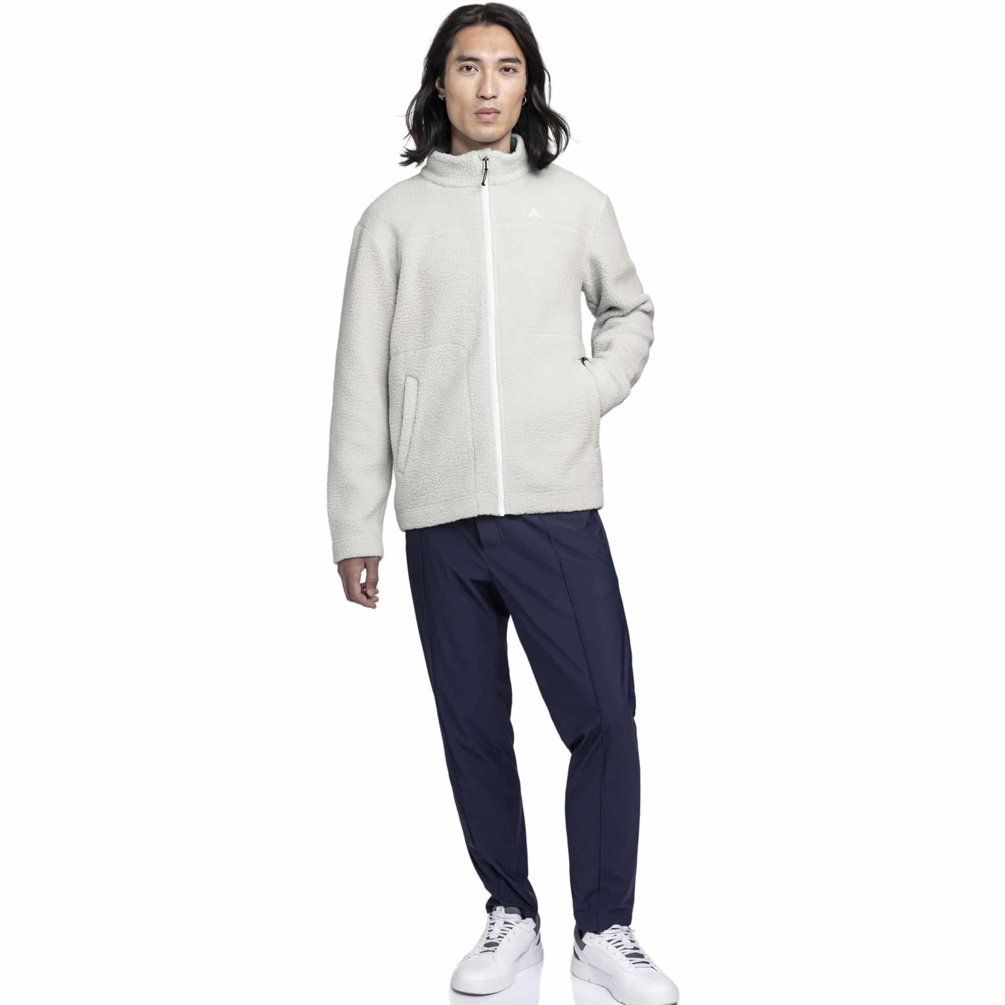Die Schöffel Urban CIRC Fleecejacke im Style Purga ist eine kuschelig warme Sherpa-Fleecejacke für Herren, die dich an kalten Tagen zuverlässig warm hält. Das innen glatt gestrickte, flauschige Sherpa-Fleece sorgt für ein angenehmes Tragegefühl, während die lockere Passform mit überschnittenen Schultern viel Bewegungsfreiheit bietet. Der Stehkragen schützt zusätzlich vor Wind und zwei Seitentaschen mit verdeckten Reißverschlüssen bieten praktischen Stauraum für Kleinigkeiten. Hergestellt aus recyceltem Material und als CIRC-Modell nahezu vollständig recycelfähig konzipiert, verbindet die Jacke Komfort mit einem nachhaltigen Ansatz.