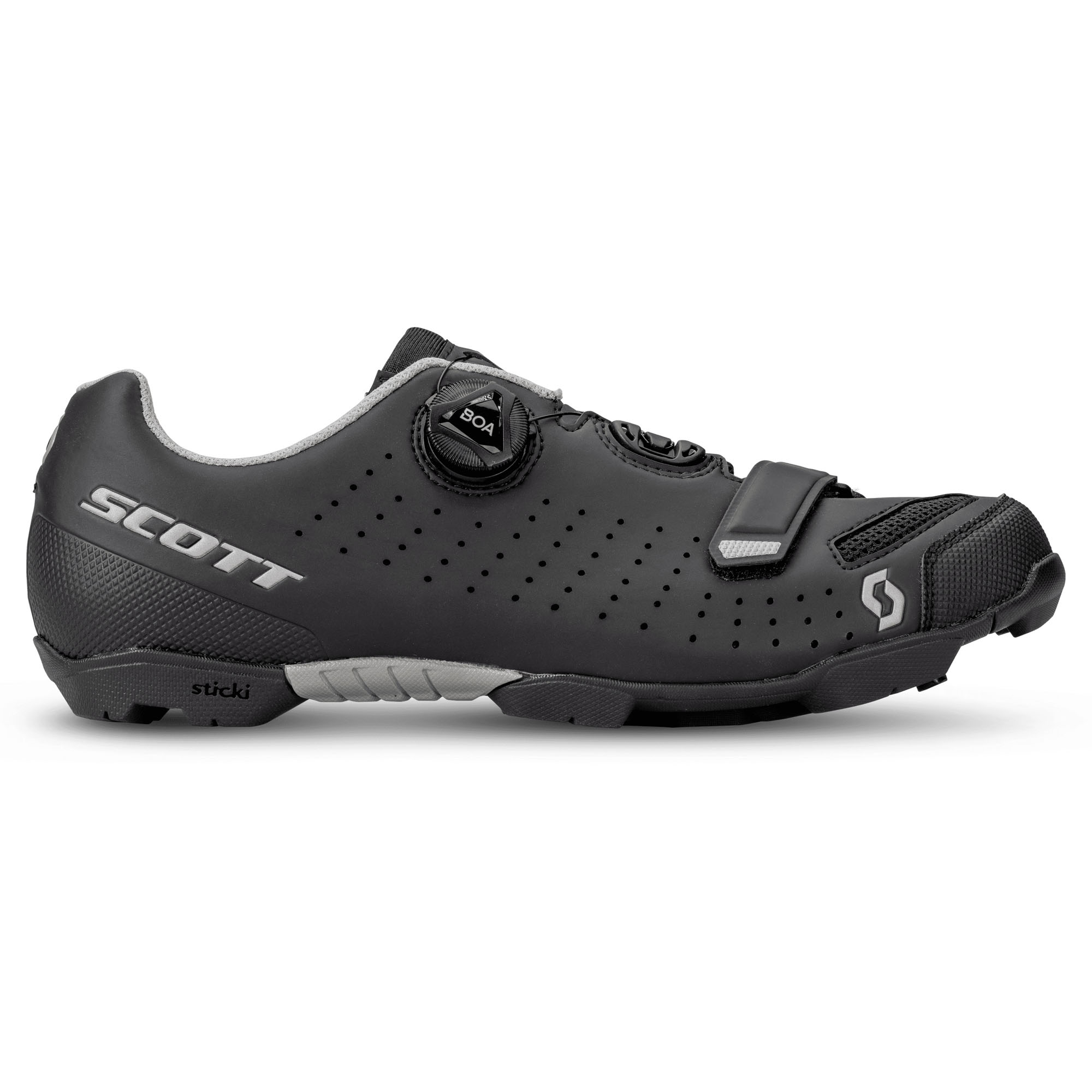 Der SCOTT MTB Comp BOA® überzeugt als leistungsstarker Mountainbike-Schuh mit optimaler Passform, effizienter Kraftübertragung und griffiger Außensohle – ideal für MTB-Touren, Trailrides und technische Offroad-Abenteuer. Das BOA® L6 Fit System ermöglicht eine präzise, einhändig justierbare Anpassung, während ein zusätzlicher Klettverschluss für einen sicheren Sitz im Vorfußbereich sorgt. Die Nylon-Verbundsohle mit einem Steifigkeits-Index von 6 bietet eine ausgewogene Mischung aus Kraftübertragung und Komfort, selbst auf langen Etappen. Die Sticki Rubber Außensohle sorgt für zuverlässigen Grip auf Wurzeln, Steinen und matschigen Trails.