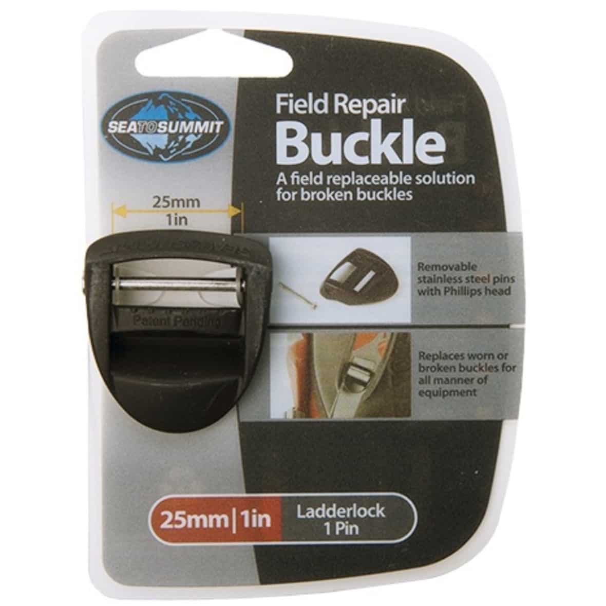 Die Field Repair Buckle Ladderlock 25mm 1 Pin von Sea to Summit ist eine robuste Ersatzschnalle für den vielseitigen Einsatz unterwegs. Der Verschluss kann schnell und einfach mit Hilfe eines Schraubenziehers angebracht werden.
