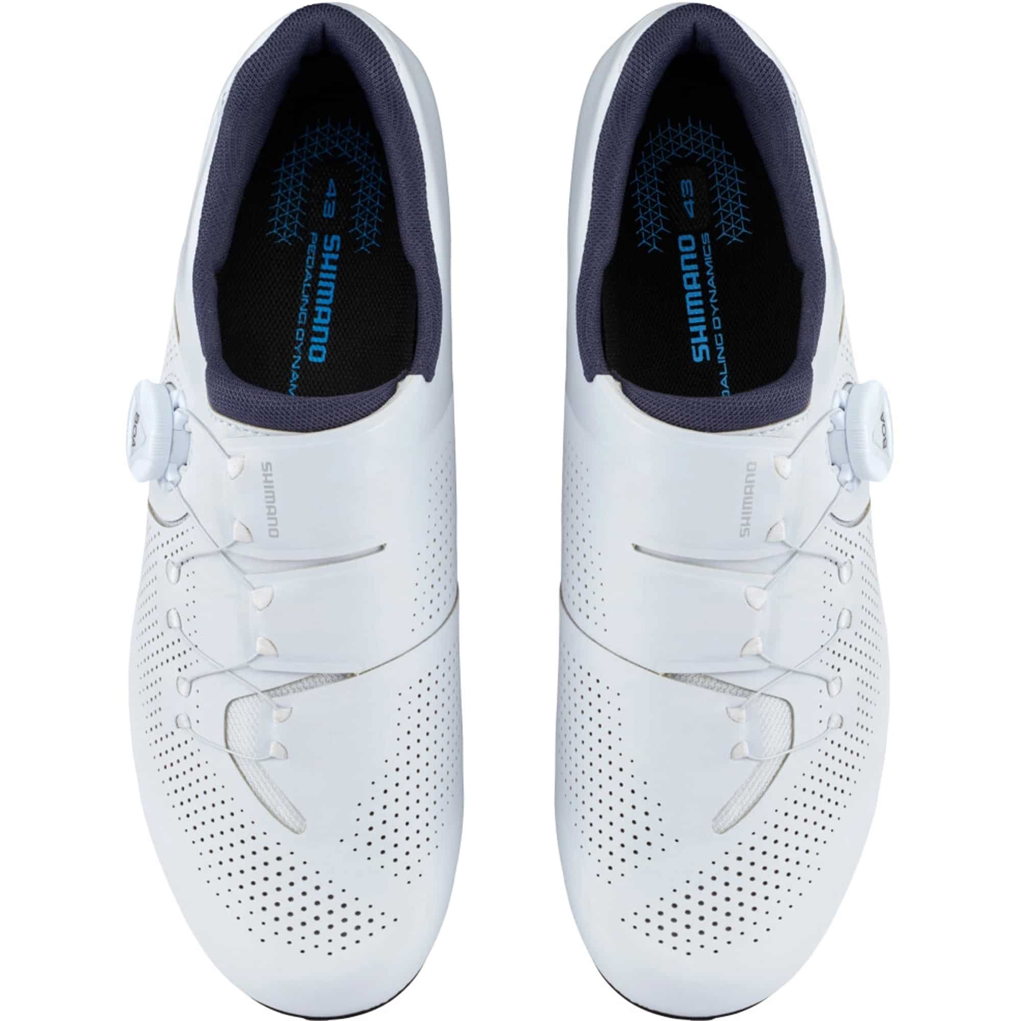 Egal, ob du gerade erst ins Rennradfahren einsteigst oder im Training gezielt an deiner Performance arbeitest – die SHIMANO SH-RC302 Rennradschuhe verbinden hohen Komfort mit effizienter Kraftübertragung. Das flexible, perforierte Kunstleder-Obermaterial sorgt zusammen mit integrierten Mesh-Anteilen für eine sehr gute Atmungsaktivität und ein angenehm trockenes Fußklima. Dank der nahtlosen, umschließenden Sohlenkonstruktion, die bis unter den Fuß reicht, sitzt der Schuh besonders passgenau und reduziert Druckstellen sowie unerwünschte Bewegungen im Schuh. Für eine schnelle und präzise Anpassung sorgt der flache BOA-L6Z-Drehverschluss, der auch während der Fahrt feinjustiert werden kann. Die nahtlose Mittelsohle mit niedriger Standhöhe unterstützt eine optimale Passform und ein direktes Pedalgefühl. Die Außensohle aus glasfaserverstärktem Nylon bietet mit ihrer mittleren Steifigkeit den idealen Mix aus effizienter Kraftübertragung und angenehmen Geheigenschaften abseits des Rads. Zusätzlich verbessert die DYNALAST-Leistenkonstruktion die Fußposition, reduziert Ermüdung und unterstützt eine besonders effiziente Umsetzung der Muskelkraft – perfekt für lange und schnelle Ausfahrten. Reflektierende Designelemente runden den sportlichen Look funktional ab. Die SH-RC302 sind mit allen gängigen Rennrad-Pedalsystemen im 3-Loch-Standard kompatibel und eignen sich damit vielseitig für Training und ambitionierte Touren. Hinweis: Aufgrund des sportlichen Schnitts fallen die Schuhe eher klein aus, gegebenenfalls empfiehlt sich die Wahl einer größeren Größe.
