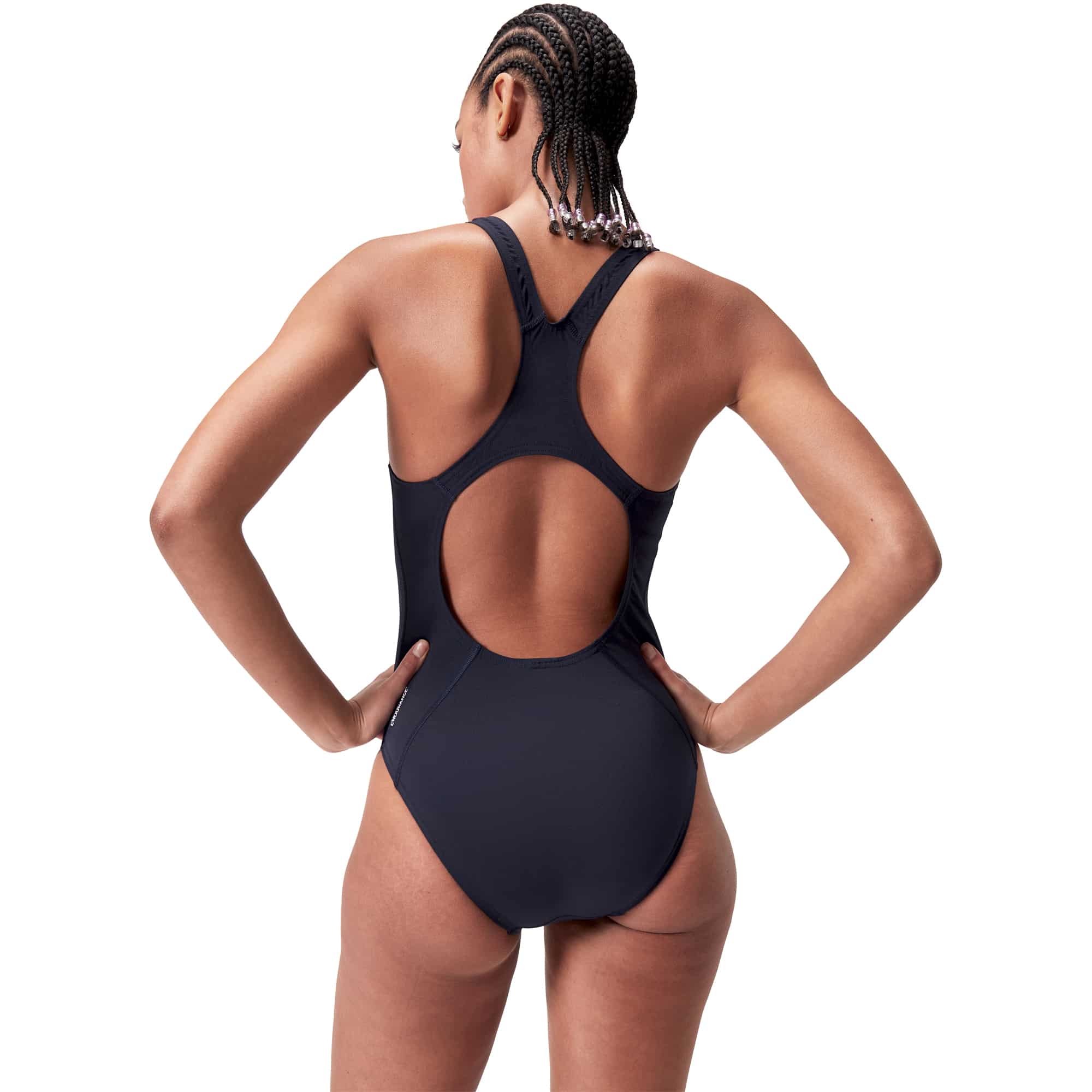 Speedo Endurance+ ist ein langlebiges, 100 % chlorbeständiges Material, das schnell trocknet, Pilling reduziert und Form sowie Farbe auch bei häufigem Training erhält. Es eignet sich ideal für regelmäßiges Schwimmen und bietet hohen Komfort und UV‑Schutz.