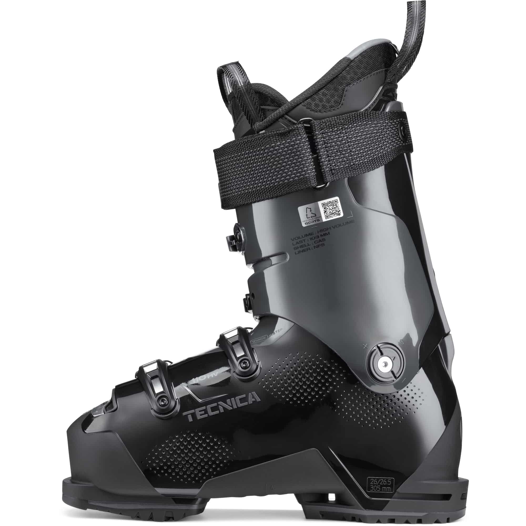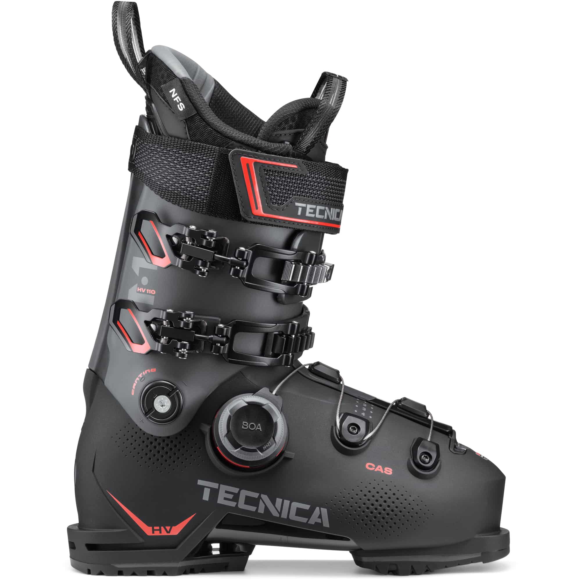 Der Mach BOA 110 ist die ideale Wahl für Skifahrer, die eine präzise und zugleich komfortable Passform suchen. Seine großvolumige, anatomisch geformte Unterschale wurde speziell für das BOA® Fit System entwickelt und ermöglicht eine leistungsstarke, feinjustierbare Anpassung mit nur einer Drehbewegung. In Kombination mit dem weichen, ebenfalls anatomisch geformten Innenfutter entsteht ein außergewöhnliches Tragegefühl, das den ganzen Tag über anhält. Der Schuh lässt sich mühelos anziehen und sitzt anschließend so zuverlässig, dass man ihn beim Fahren praktisch vergessen kann – perfekt für lange, intensive Skitage. Erhältlich in den Größen 240 bis 325, bringt der Mach BOA 110 in halber Paargröße ein Gewicht von 1840 g auf die Waage. Sein N.F.S. Comfort-Innenschuh in Ecodesign-Ausführung mit Celliant® sorgt für Wärme und angenehmen Halt. Die GripWalk-Sohlen nach ISO 23223 bieten zusätzlichen Gehkomfort und Trittsicherheit. Die C.A.S. PU-Schale mit Double Quick Instep erleichtert den Einstieg, während die mono-injizierte PP-Manschette Stabilität liefert. Zwei mikroverstellbare Schaftschnallen und das BOA® Fit System gewährleisten eine exakte Passform, die durch einen 45-mm-Powerstrap weiter unterstützt wird. Mit einer Vorlage von 12° bietet der Schuh eine ausgewogene, sportliche Position für ein kraftvolles und zugleich kontrolliertes Fahrverhalten.