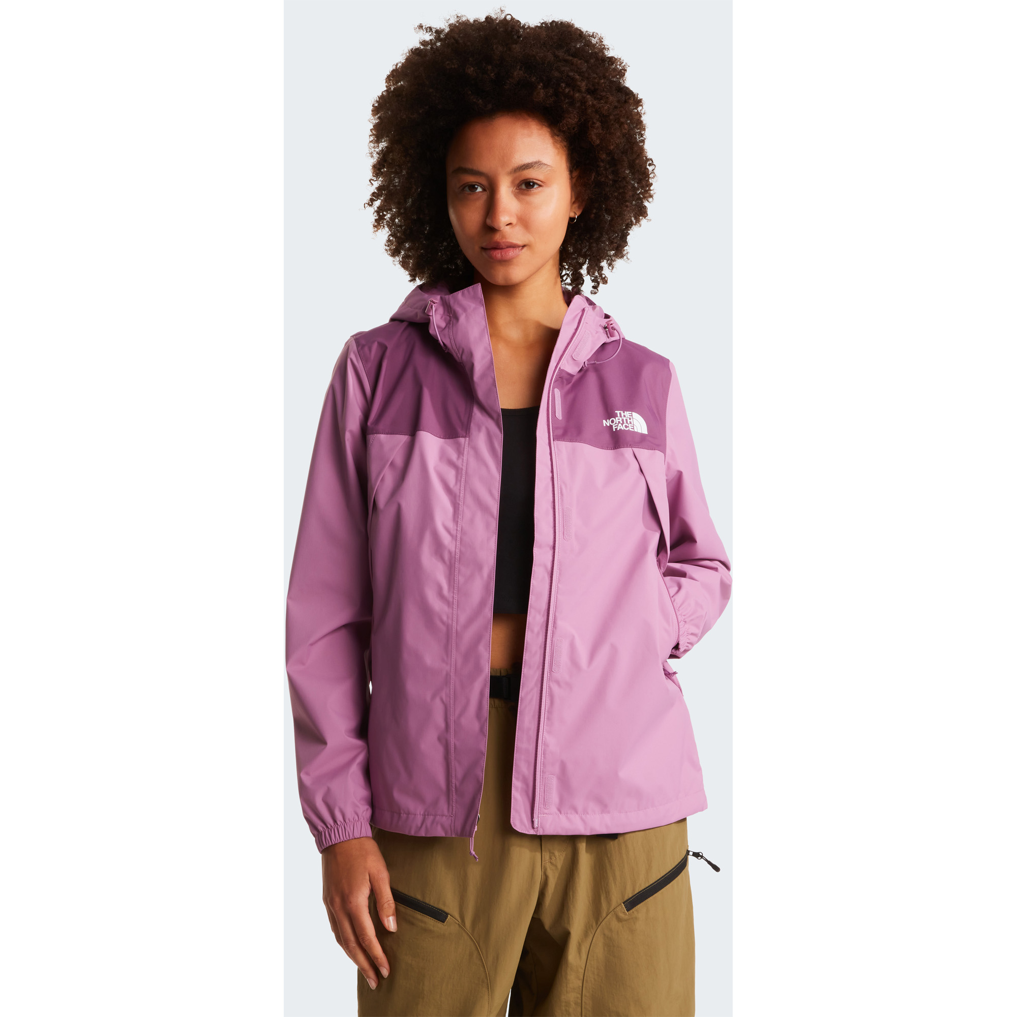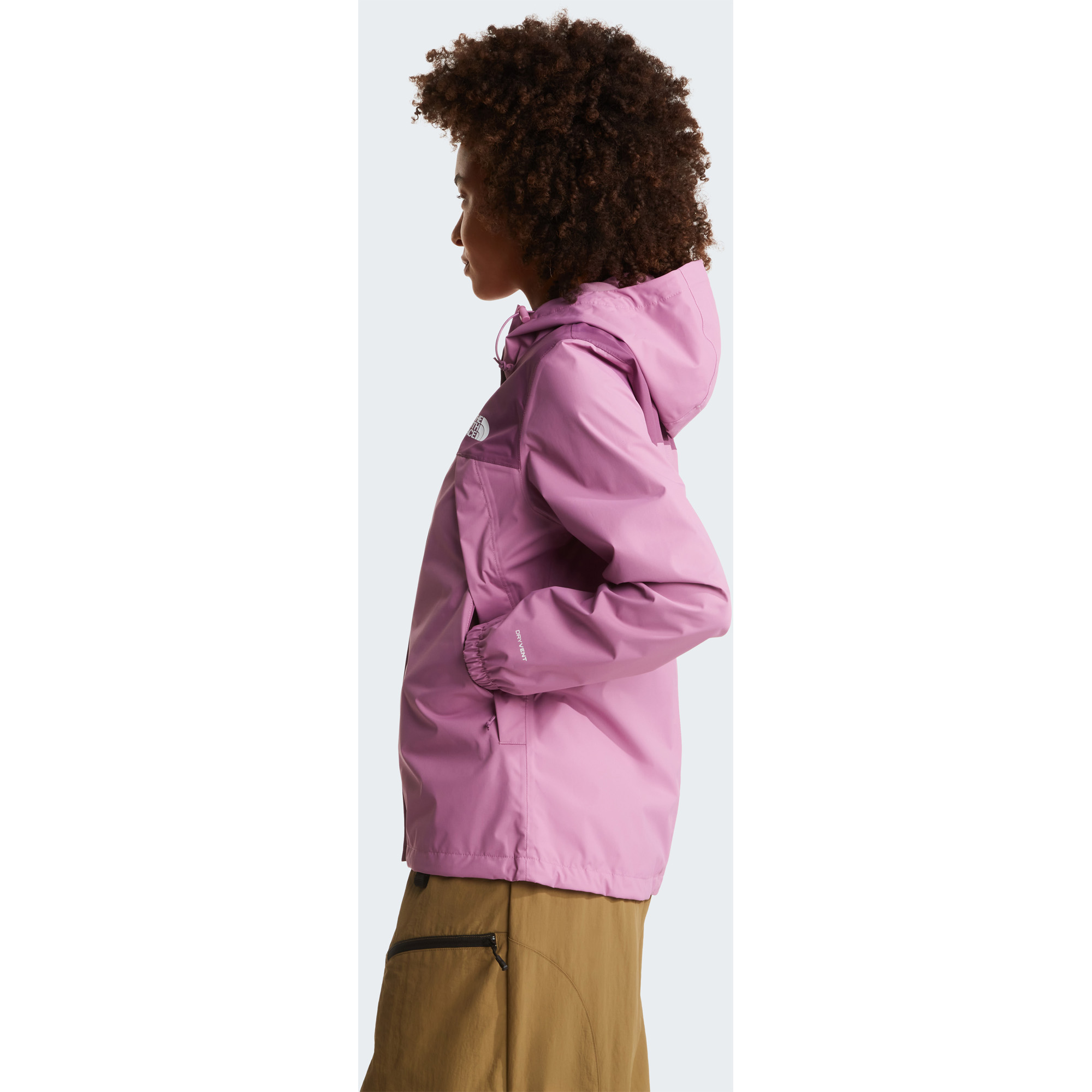 Die Antora Regenjacke für Damen von The North Face bietet zuverlässigen Schutz bei wechselhaftem Wetter und kombiniert funktionale Outdoor-Technologie mit modernem Design. Das wasserdichte, winddichte und atmungsaktive DryVent™-Material mit vollständig versiegelten Nähten hält Regen und Wind effektiv ab, während überschüssige Wärme nach außen entweichen kann, sodass du auch bei aktiven Unternehmungen angenehm trocken und komfortabel bleibst. Das Außenmaterial aus 100 % recyceltem Polyester-Ripstop mit PFC-freier, dauerhaft wasserabweisender DWR-Beschichtung sorgt für zusätzliche Nachhaltigkeit und Schutz vor leichter Feuchtigkeit. Eine angesetzte, dreiteilige und verstellbare Kapuze schützt zuverlässig vor Regen, während eine Windschutzleiste mit Hook-and-Loop-Verschluss den Frontreißverschluss abdeckt und das Eindringen von Nässe verhindert. Sichere Reißverschluss-Handwärmtaschen bieten praktischen Stauraum für wichtige Essentials, während ein elastischer Kordelzug am Saum sowie ein innenliegender elastischer Taillenzug eine individuelle Passform ermöglichen. Der leicht verlängerte Rücken sorgt für zusätzlichen Schutz, während das klassische Logo auf Brust und Schulter den typischen The North Face Look unterstreicht. Ideal für Alltag, Reisen und Outdoor-Aktivitäten bei unbeständigem Wetter.