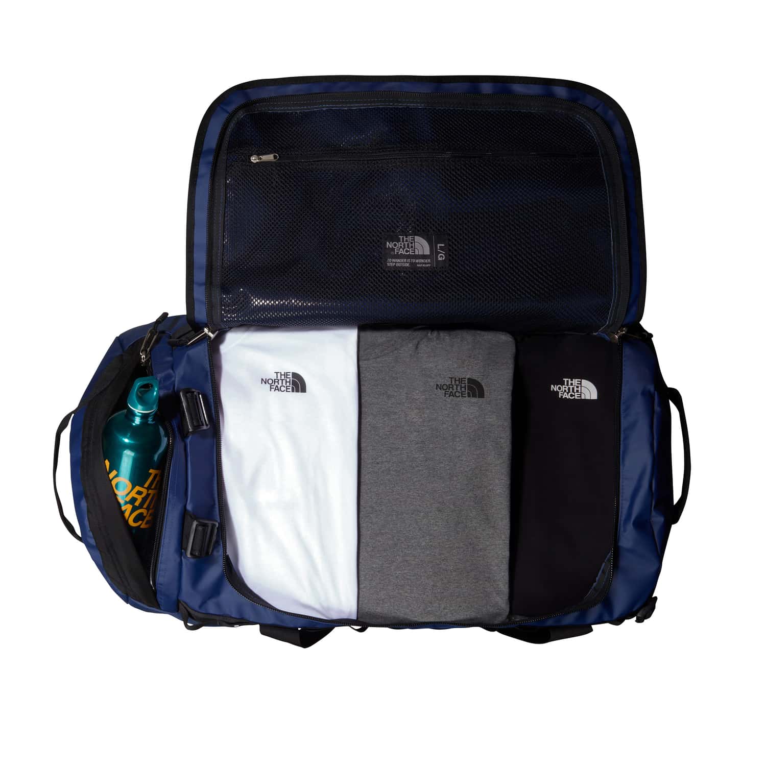 Die Base Camp Duffel Large Reisetasche von The North Face ist ein legendärer Reisebegleiter, der jetzt aus recycelten Materialien besteht und mit wasserabweisendem DWR-Schutz ausgestattet ist. Mit einem großzügigen Volumen von 95 Litern bietet sie ausreichend Platz für Ausrüstung und persönliche Gegenstände. Die Tasche lässt sich bequem als Tragetasche mit zwei Handgriffen oder als Rucksack mit verstellbaren Schultergurten tragen. Sie verfügt über eine große D-förmige Öffnung, Kompressionsriemen zur Volumenreduzierung und ein separates RV-Fach für schmutzige oder nasse Kleidung. Dank robuster Konstruktion und verstärkten Nähten ist die Tasche besonders langlebig und widerstandsfähig, ideal für jedes Abenteuer.