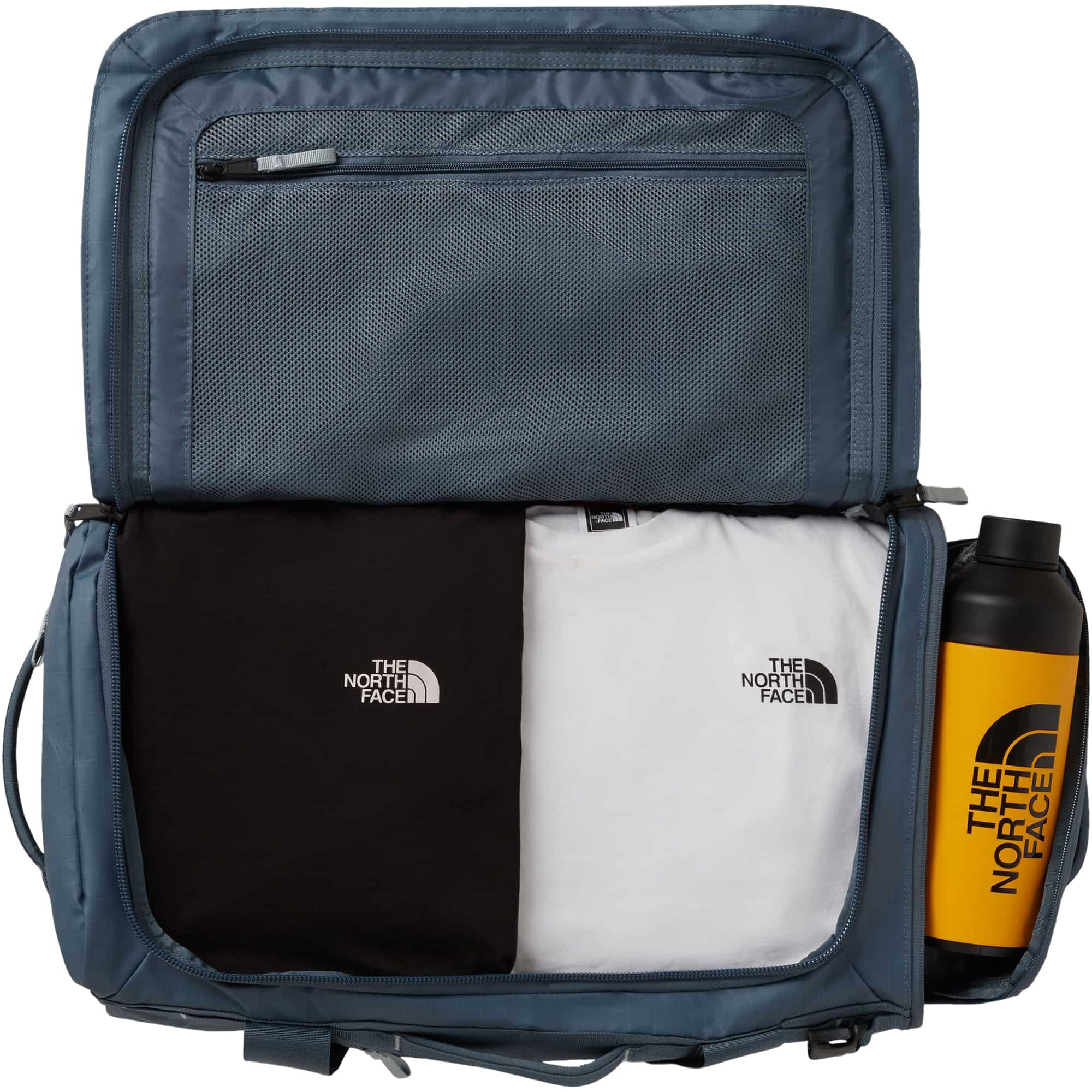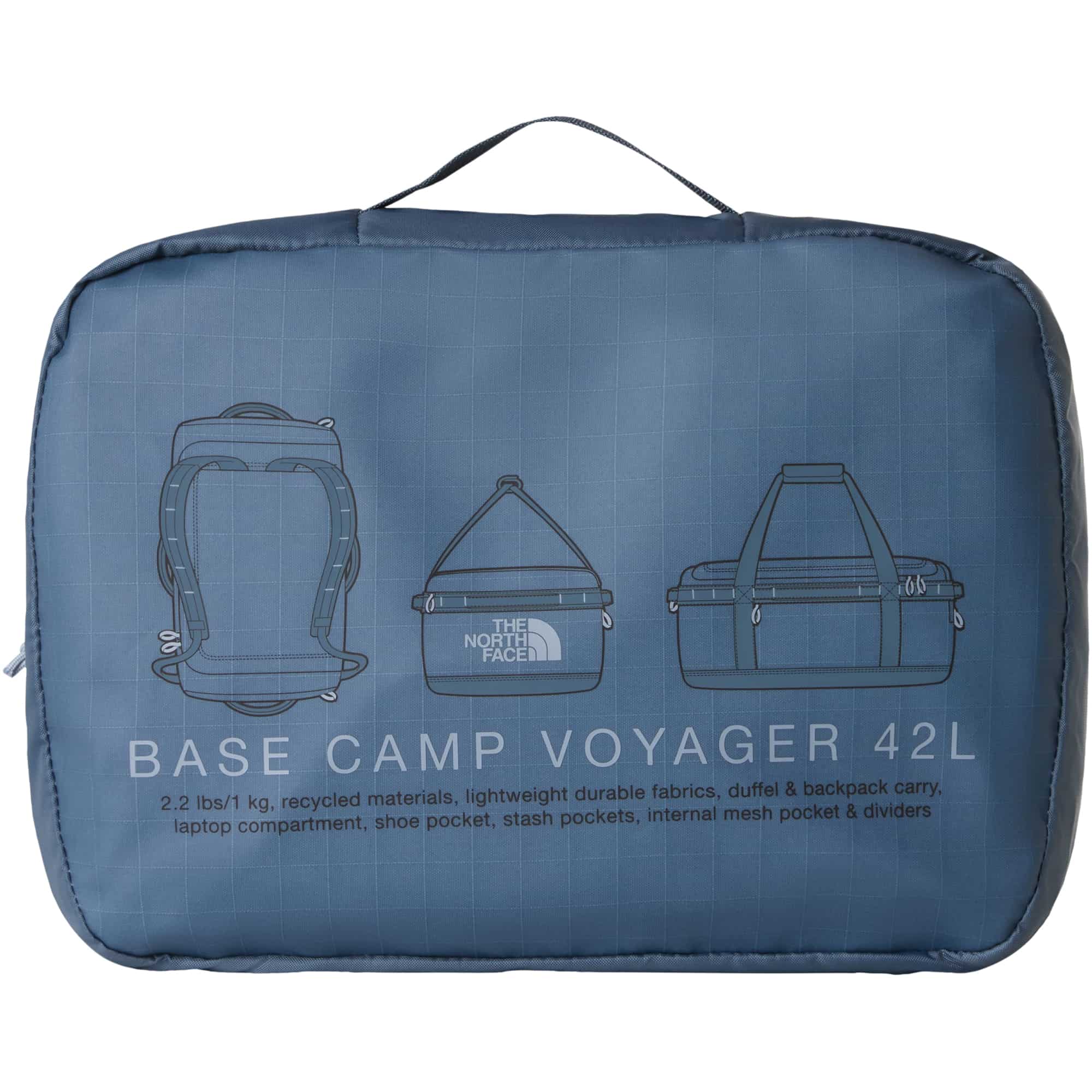 Die Base Camp Voyager Duffel 42 von The North Face bietet reichlich Platz für alles, was du auf Reisen und im Alltag brauchst – von den wichtigsten Essentials bis hin zum kleinen Krimskrams. Inspiriert von der legendären Base Camp Duffel-Tasche wurde die Voyager speziell für Reisen weiterentwickelt: Sie ist genauso handlich, dabei leichter und mit noch mehr durchdachten Fächern ausgestattet. Du kannst sie flexibel als Rucksack oder Duffel-Tasche tragen, denn die komfortabel gepolsterten Schultergurte lassen sich ausklicken und hinter dem Rückenpolster verstauen. Seitliche Griffe sorgen dafür, dass die Tasche beim Gehen stabil bleibt und nicht unangenehm an die Seite schlägt. Im Inneren überzeugt die Voyager mit einem gepolsterten 15-Zoll-Laptop-Außenfach mit Reißverschluss, einer Innentasche für wichtigen Kleinkram sowie einer verstellbaren, bei Bedarf komplett herausnehmbaren Trennwand im Hauptfach. So lassen sich saubere und schmutzige Wäsche oder unterschiedliche Ausrüstungsgegenstände einfach voneinander trennen. Für schnellen Zugriff auf Handy oder Pass gibt es zudem ein kleines Außenfach mit Sicherheits-Reißverschluss. Äußere Daisy-Chain-Gurtbänder bieten vielseitige Befestigungsmöglichkeiten. Abgerundet wird das durchdachte Design durch recycelte Materialschlaufen, Schnallen und Mesh – funktional, komfortabel und nachhaltig zugleich.
