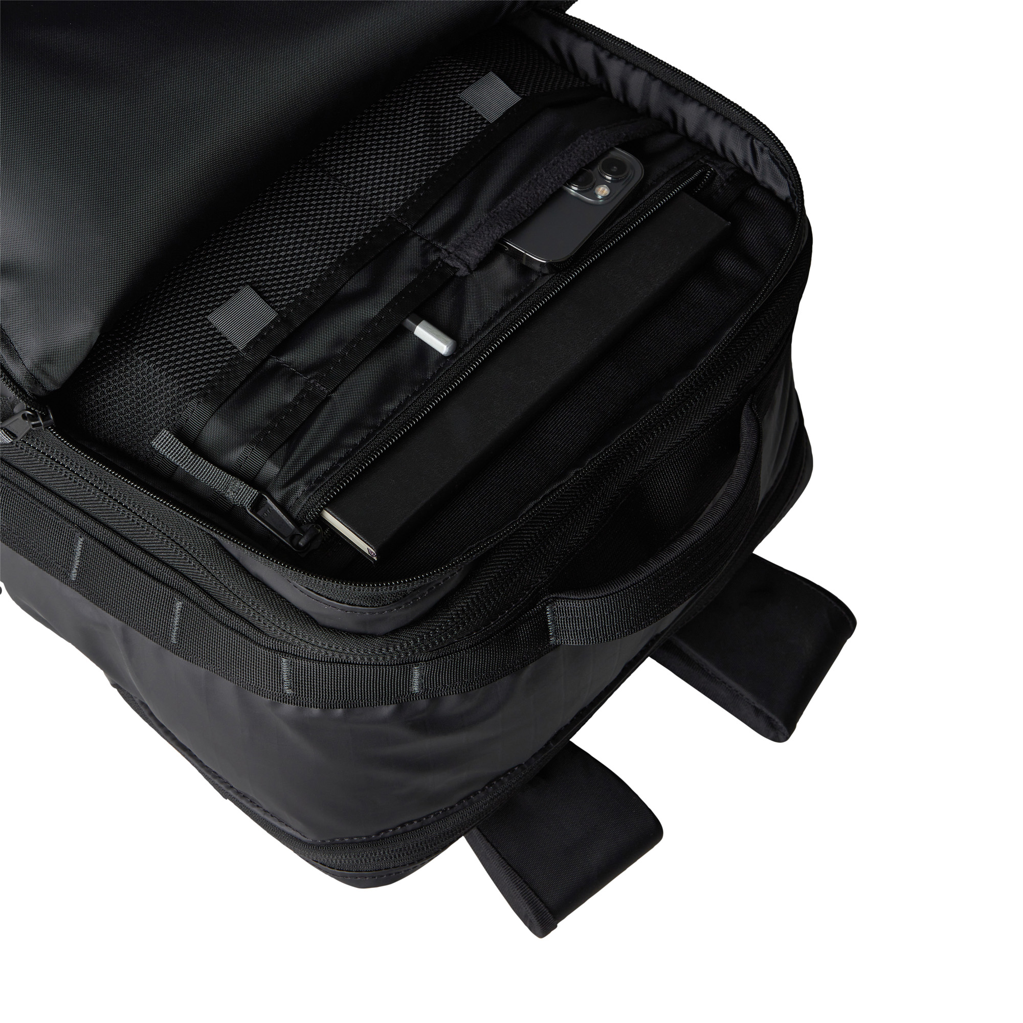 Der Base Camp Voyager Reiserucksack von The North Face ist ein robuster und vielseitiger Tages‑ und Reise‑Rucksack, der mit seinem strapazierfähigen, wasser‑ und abriebfesten Material zuverlässig deine Ausrüstung schützt. Der große Hauptbereich bietet reichlich Platz — plus einen einstellbaren Trenner, mit dem du z. B. Kleidung und Schuhe getrennt verstauen kannst und ein gepolstertes, fleecegefüttertes Laptopfach für Geräte bis 16″. Die gepolsterten Schultergurte und das Rückenpanel sorgen für angenehmen Tragekomfort selbst bei langen Tagen unterwegs und dank Stand‑up‑Design und mehreren Tragegriffen ist der Rucksack flexibel und reisefreundlich. Zusätzlich sorgen externe Fächer und Organisationsbereiche für Übersichtlichkeit, große Wasserflaschentaschen und leicht reflektierende Details erweitern den Alltag‑ und Reisekomfort.