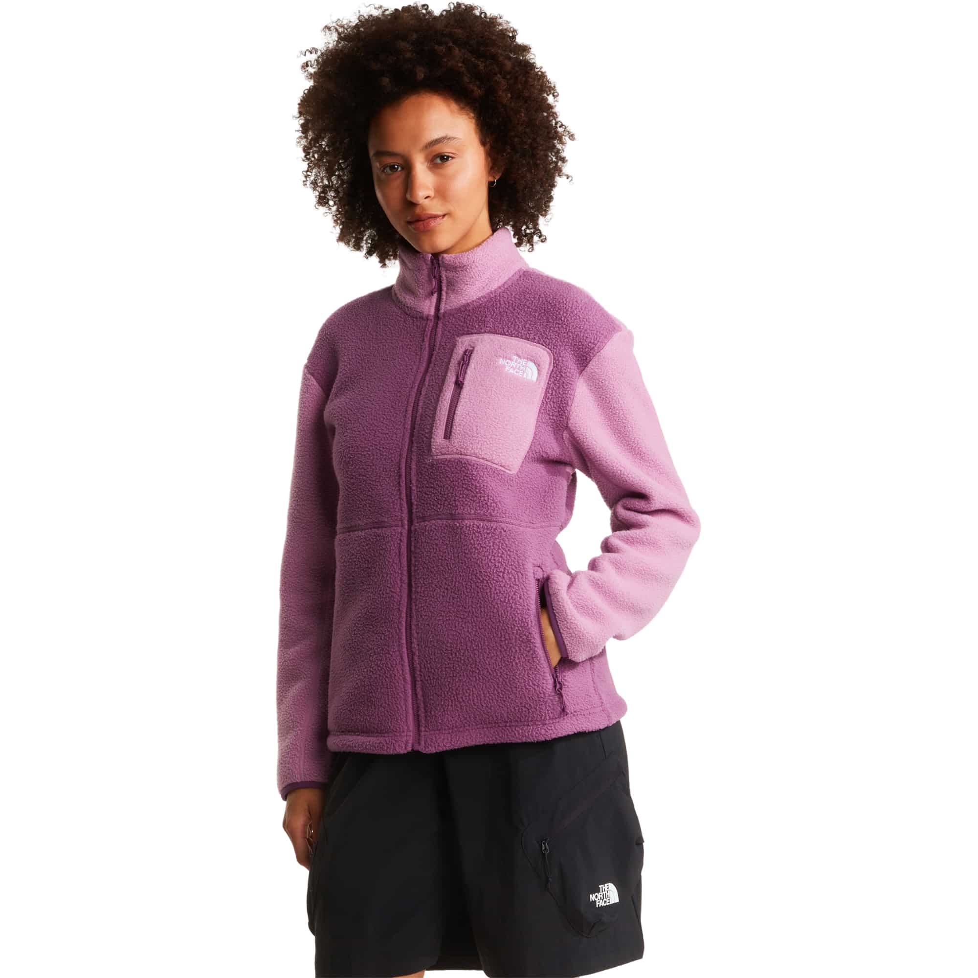 Die Yumiori Fleecejacke mit durchgehendem Reißverschluss für Damen von The North Face ist eine kuschelig weiche, mittelschwere Fleecejacke, die zuverlässige Wärme für Wanderungen, Outdoor-Abenteuer und den Alltag bietet. Das hochwertige High-Pile-Fleece aus 100 % Polyester sorgt für angenehmen Tragekomfort und eine optimale Wärmeleistung bei gleichzeitig leichtem Gefühl. Die bequeme Standard-Passform bietet viel Bewegungsfreiheit, während der durchgehende Reißverschluss ein einfaches An- und Ausziehen ermöglicht. Zwei Reißverschlusstaschen an den Seiten sowie eine praktische Brusttasche bieten sicheren Stauraum für Smartphone, Schlüssel oder andere kleine Essentials. Abgerundet wird das funktionale Design durch elastische Bänder an den Bündchen und die klassischen The North Face Logos auf Vorder- und Rückseite, die der Damen Fleecejacke einen sportlichen Outdoor-Look verleihen.