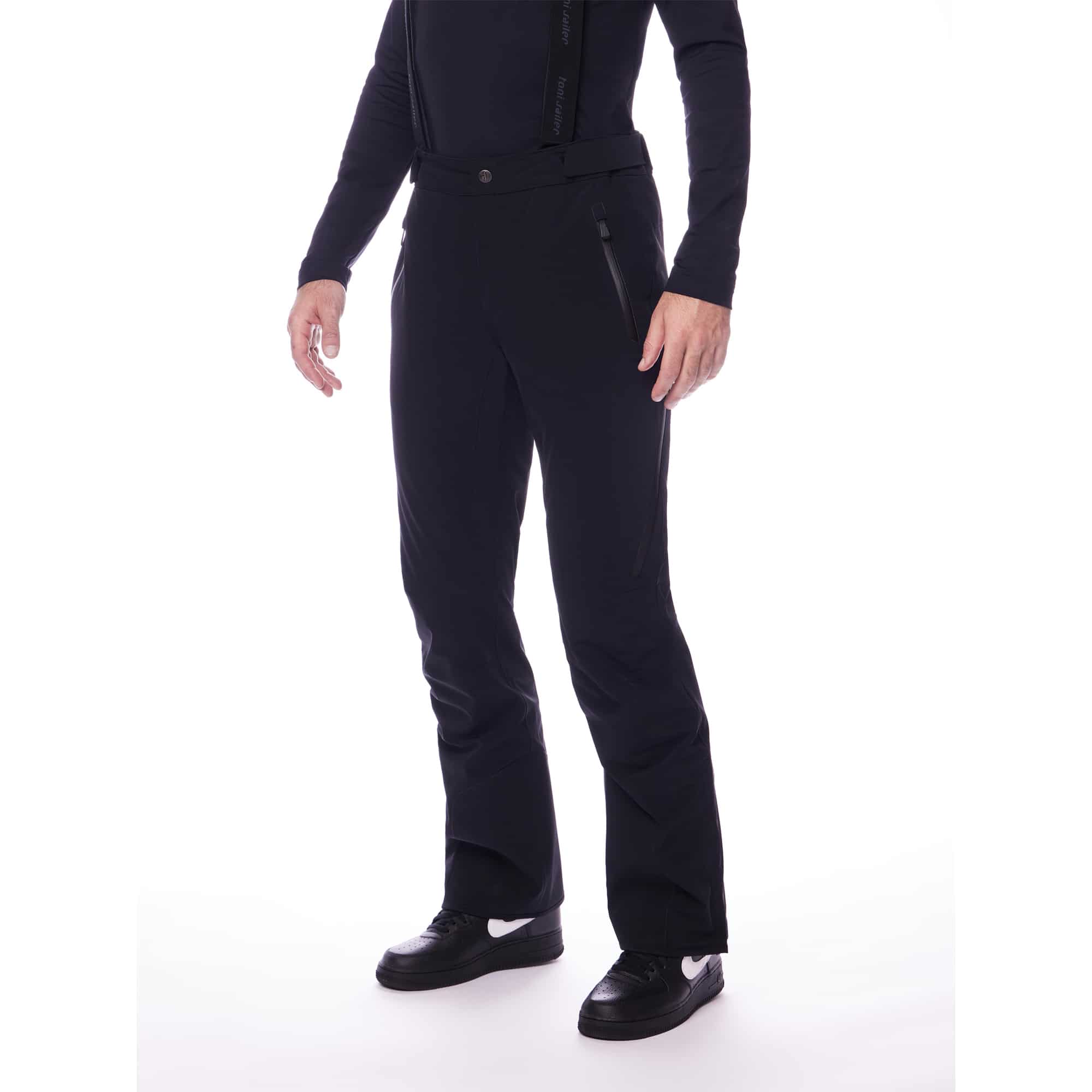 Die Nicky Short Length Herren Skihose von Toni Sailer steht für höchste Performance und anspruchsvolles Design. Bei dieser Toni Sailer Skihose ist die Beinlänge um ca. 5 cm verkürzt. Gefertigt aus hochwertigem 4-Wege Stretch, bietet sie maximale Bewegungsfreiheit und eine perfekte Passform – ob auf der Piste oder im Gelände. Mit einer Wassersäule von 20.000 mm und einer Atmungsaktivität von 20.000 g/m²/24 h schützt sie zuverlässig vor Nässe, Wind und Kälte. Funktionale Details wie die belüftenden Reißverschlüsse an den Beinaußenseiten, ein verstellbarer Bund mit sicherem Schiebeknopf sowie der rutschfeste Schneefang sorgen für Komfort und Praxistauglichkeit. Zwei seitliche Reißverschlusstaschen, eine Gesäßtasche, ein robuster Kantenschutz und die beinabschließenden Zipper unterstreichen das durchdachte Design. Die im Lieferumfang enthaltenen Hosenträger runden die Ausstattung ab.