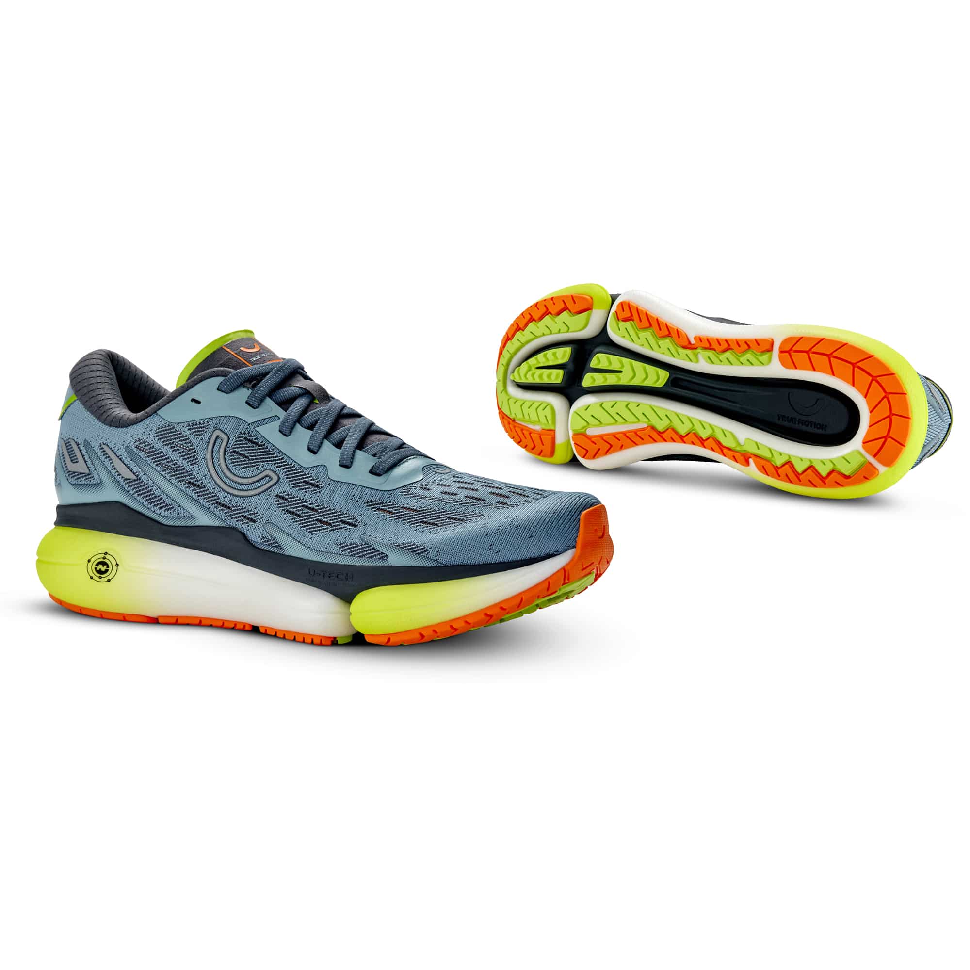 Biological U-TECH™ ist eine True Motion Technologie, die den Fuß beim Laufen anatomisch führt, das Abrollen unterstützt und Gelenke durch stabile, gleichmäßige Dämpfung schont.