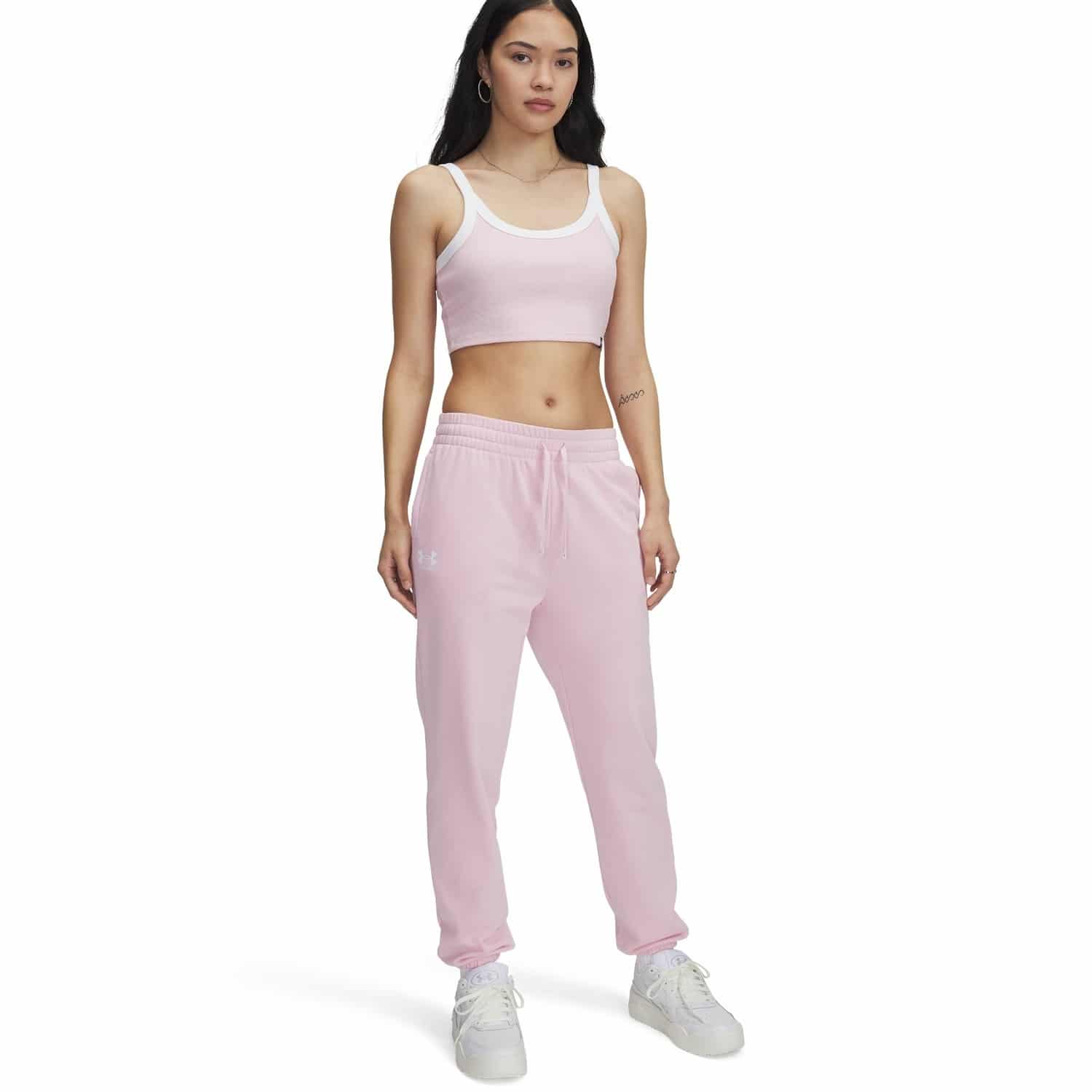 Die Under Armour Rival Terry Damen Trainingshosen sind die ideale Wahl für alle, die es vor und nach dem Training warm und bequem mögen. Der leichte French-Terry-Stoff ist außen glatt und innen angenehm weich – für genau die richtige Balance aus Komfort und Funktion. Das feuchtigkeitsableitende Material trocknet schnell und hält dich auch bei intensiven Einheiten angenehm trocken. Der elastische Bund mit Außenkordel sorgt für eine individuelle Passform, während offene Seitentaschen praktischen Stauraum bieten.