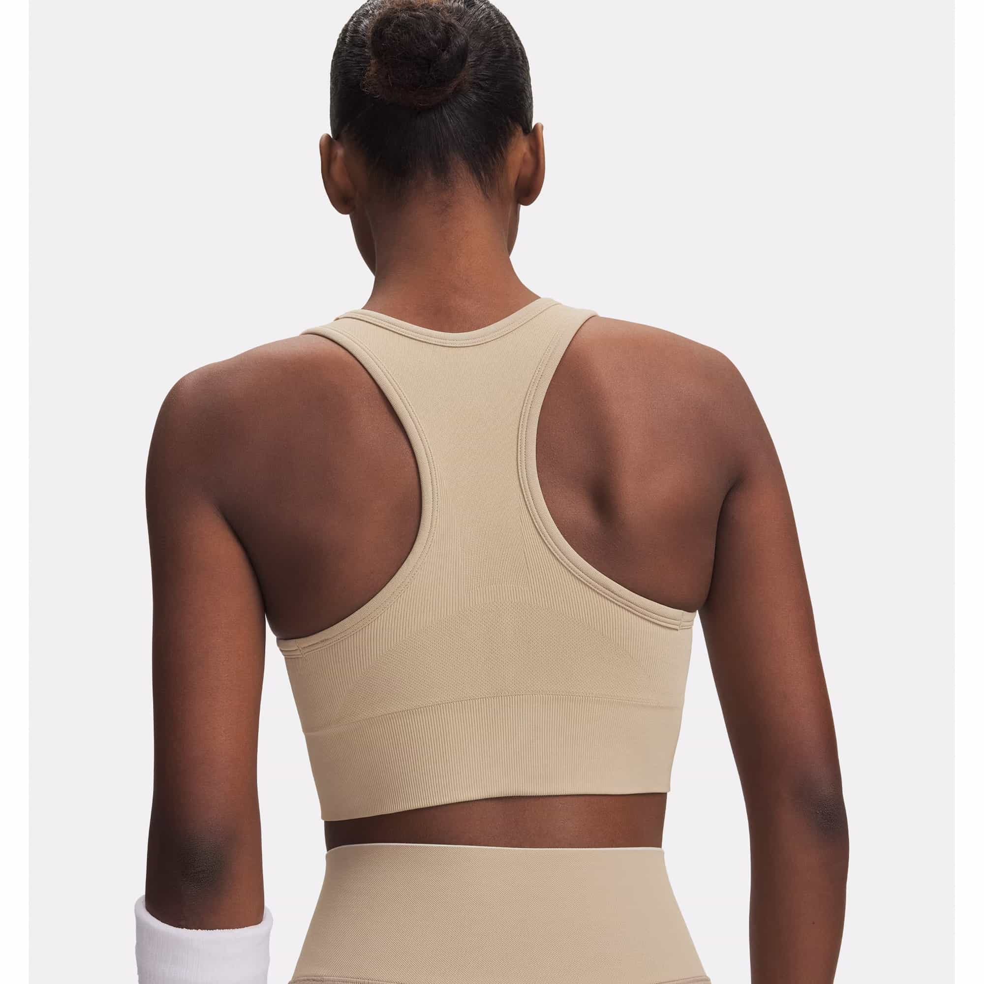 Der Under Armour Vanish Seamless Mid Damen Sport-BH bietet zuverlässigen Halt bei Trainingseinheiten mit mittlerer Belastung und überzeugt durch eine nahtlose, figurnahe Passform mit verlängertem Schnitt für hohen Tragekomfort, das weiche, atmungsaktive Stretchmaterial passt sich jeder Bewegung an, leitet Feuchtigkeit effektiv ab und trocknet schnell, während atmungsaktive Zonen gezielt für ein angenehmes Körperklima sorgen, herausnehmbare Körbchen unterstützen Form und Halt, das Racerback-Design ermöglicht optimale Bewegungsfreiheit und macht diesen Sport-BH ideal für Fitness, Krafttraining, Radfahren und intensive Workouts.