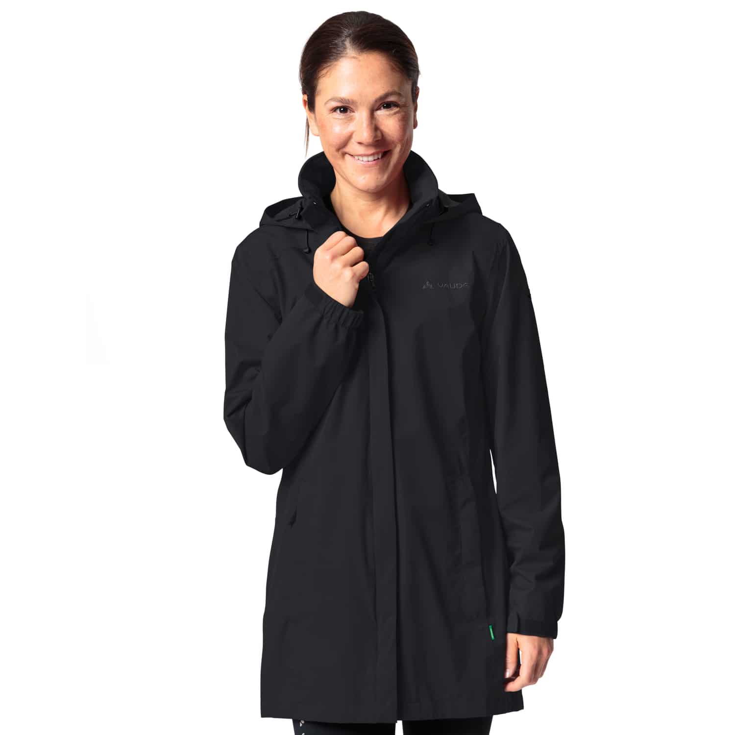 Der Escape Damen Parka von VAUDE ist der ideale Begleiter für das ganze Jahr und überzeugt im längeren Schnitt mit schlichtem Design. Die Jacke ist wasser- und winddicht sowie atmungsaktiv und bietet dank 2-Wege-Reißverschluss flexible Bewegungsfreiheit, während die verstellbare, im Kragen verstaubare Kapuze und teilweise elastische Armabschlüsse für optimalen Sitz sorgen. Zwei seitliche Reißverschlusstaschen schaffen praktischen Stauraum für unterwegs. Der Regen-Parka wird überwiegend aus recyceltem Polyester hergestellt und ist mit Eco Finish PFC-frei wasser- und schmutzabweisend ausgerüstet. Das Green Shape Label steht für ein umweltfreundliches, funktionelles Produkt aus nachhaltigen, bluesign® zertifizierten Materialien, und als Leader-Mitglied der Fair Wear Foundation setzt sich VAUDE zudem für faire Arbeitsbedingungen ein.