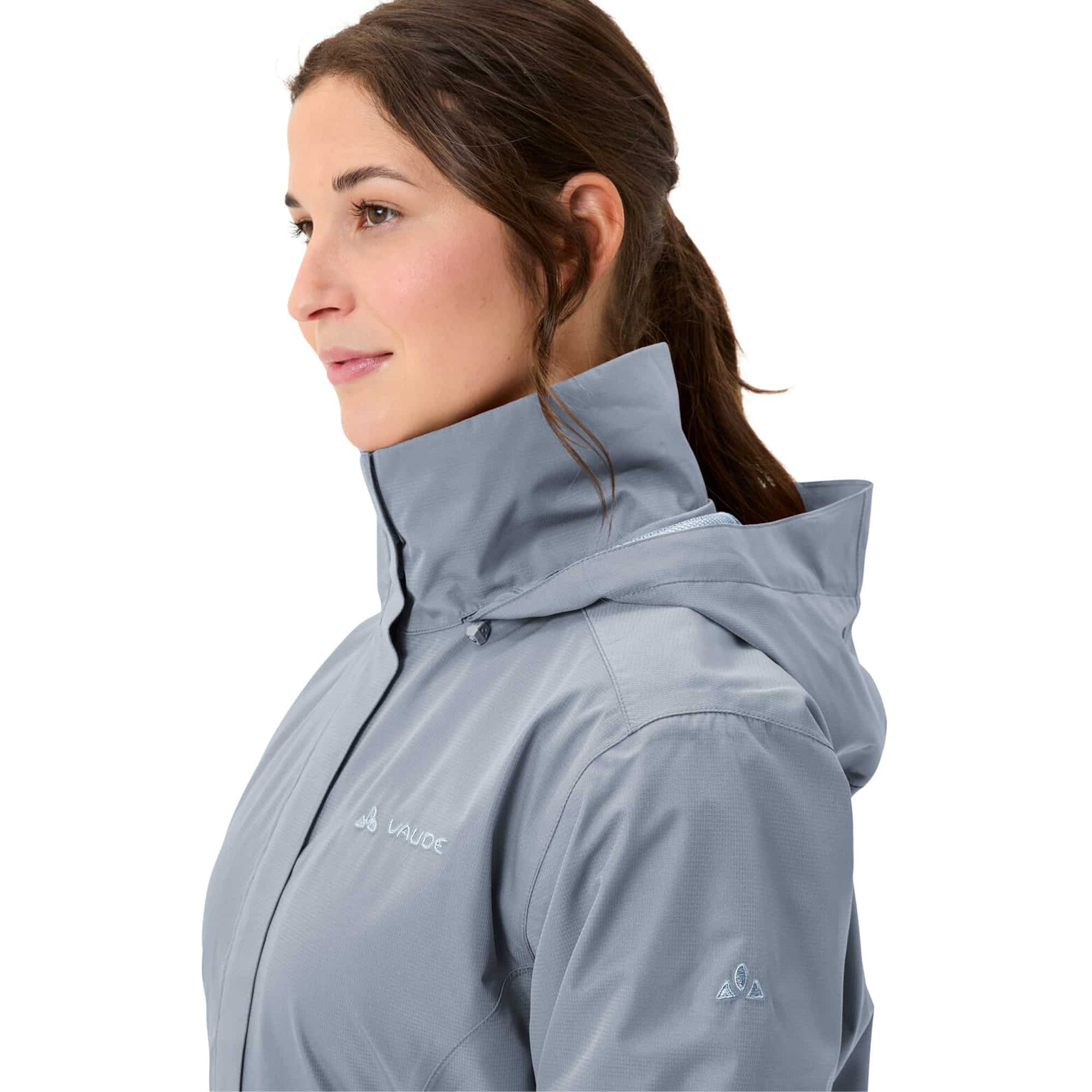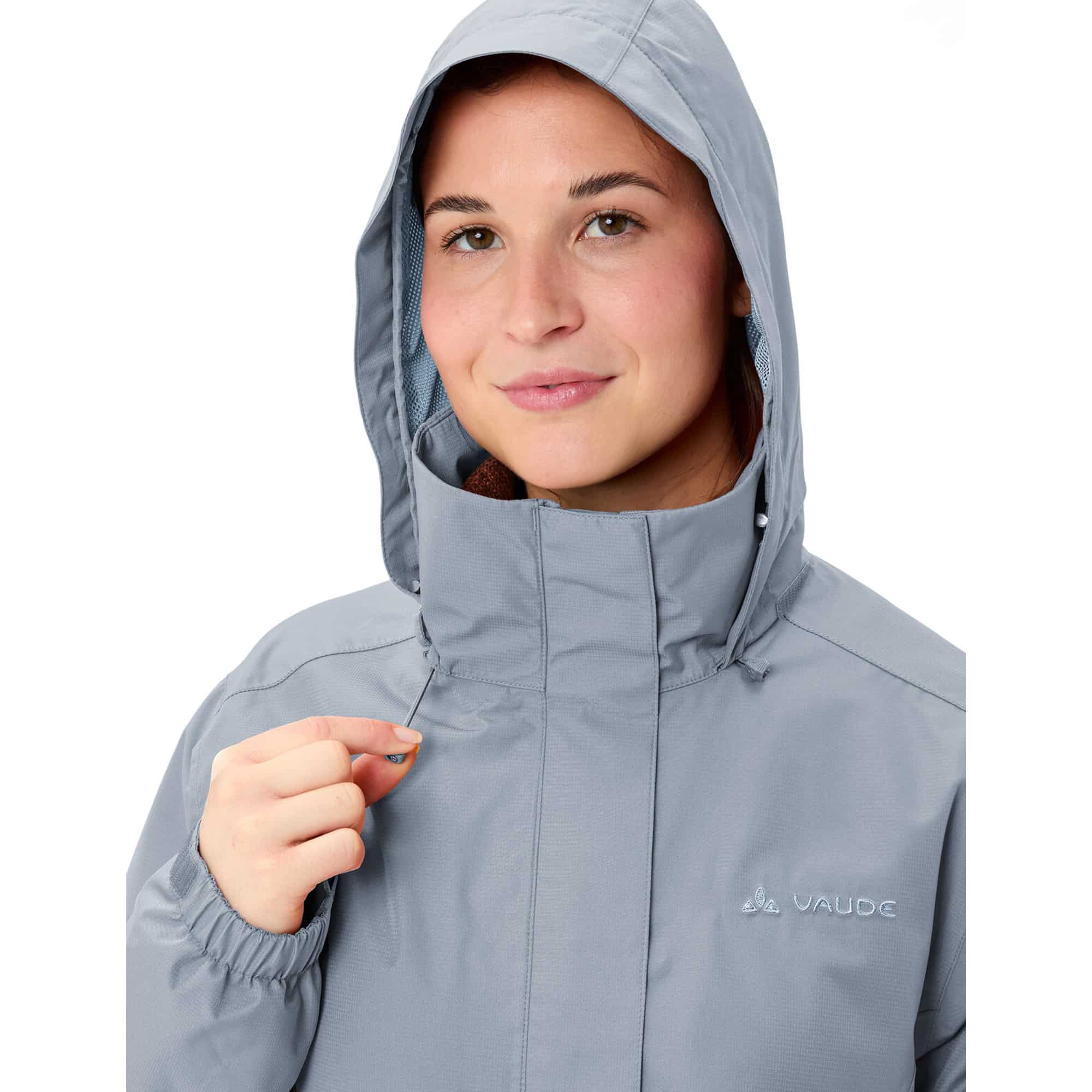 Die Vaude Escape Light Regenjacke für Damen überzeugt seit Langem als vielseitiger Klassiker für Outdoor- und Freizeitaktivitäten. Ob beim Wandern, auf Reisen oder im Alltag – sie bietet zuverlässigen Wetterschutz und hohen Tragekomfort in jeder Situation. Das wasserdichte, winddichte und zugleich atmungsaktive Material schützt effektiv vor wechselhaftem Wetter. Die Kapuze lässt sich bei Bedarf einfach im Kragen verstauen und sorgt so für zusätzliche Flexibilität. Wichtige Kleinigkeiten wie Geldbeutel oder Taschentücher sind in den zwei Reißverschlusstaschen sicher aufgehoben. Für eine individuelle Passform lassen sich sowohl der Saum mittels Kordelzug als auch die Ärmelabschlüsse per Klettverschluss regulieren. Der praktische Zwei-Wege-Frontreißverschluss ist besonders reparaturfreundlich und trägt zur langen Lebensdauer der Jacke bei. Abgerundet wird das Gesamtpaket durch das VAUDE Green Shape-Label, das für eine umweltfreundliche Herstellung und den Einsatz nachhaltiger Materialien steht.