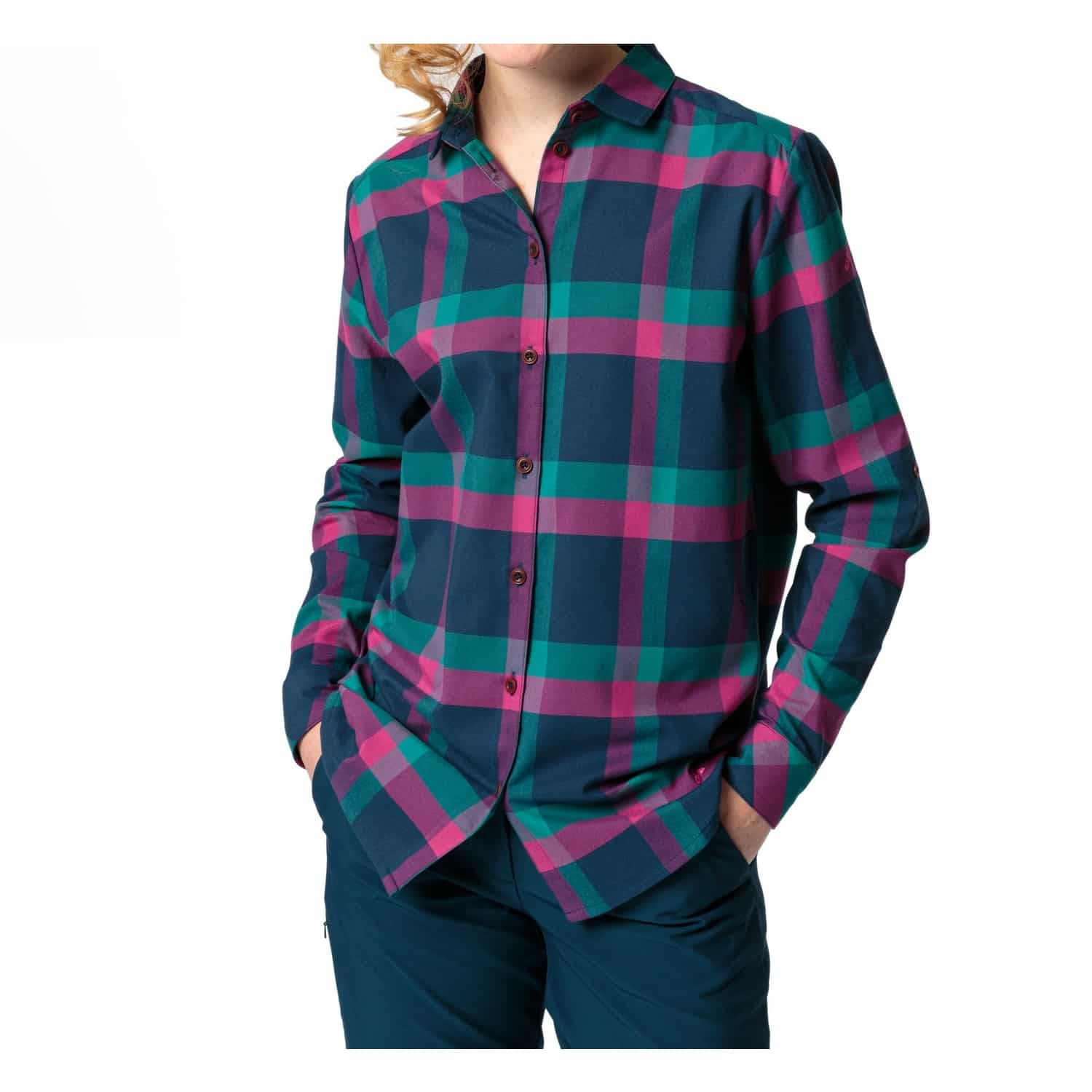 Das Vaude Farsund III ist ein leichtes Langarm-Outdoor-Shirt aus 98 % recyceltem Polyester und 2 % Elasthan, das angenehm stretchig ist. Es trocknet schnell und ist atmungsaktiv, ideal für aktive Tage draußen.