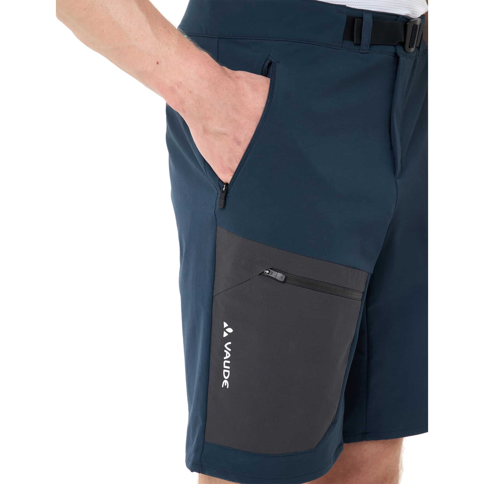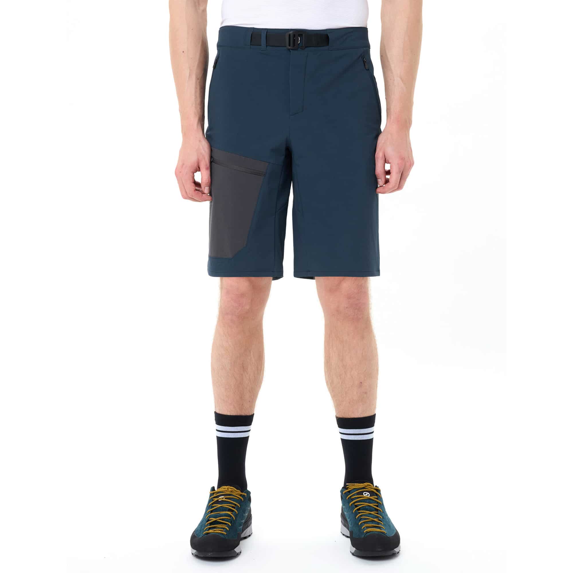 Die Badile Softshell Shorts für Herren sind die ideale Wahl für sommerliche Wanderungen und anspruchsvolle Bergtouren und überzeugen durch ihre robuste Verarbeitung sowie funktionale Ausstattung. Das leichte und strapazierfähige Material ist besonders atmungsaktiv, windabweisend und bietet zuverlässigen Schutz bei wechselnden Bedingungen. Der Bund mit integriertem Gürtel sorgt für einen sicheren und komfortablen Sitz bei jeder Bewegung. Vier praktische Reißverschlusstaschen, darunter zwei seitliche, eine Gesäßtasche und eine Beintasche, bieten ausreichend Stauraum für wichtige Utensilien. Der sportliche und bequeme Schnitt gewährleistet maximale Bewegungsfreiheit auf Wanderwegen und alpinen Pfaden. Die Eco Finish Ausrüstung macht das Material wasser- und schmutzabweisend, während der Verzicht auf PFC für eine umweltfreundlichere Herstellung steht. Das VAUDE Green Shape Label unterstreicht den nachhaltigen Anspruch dieser vielseitigen Outdoor Shorts.