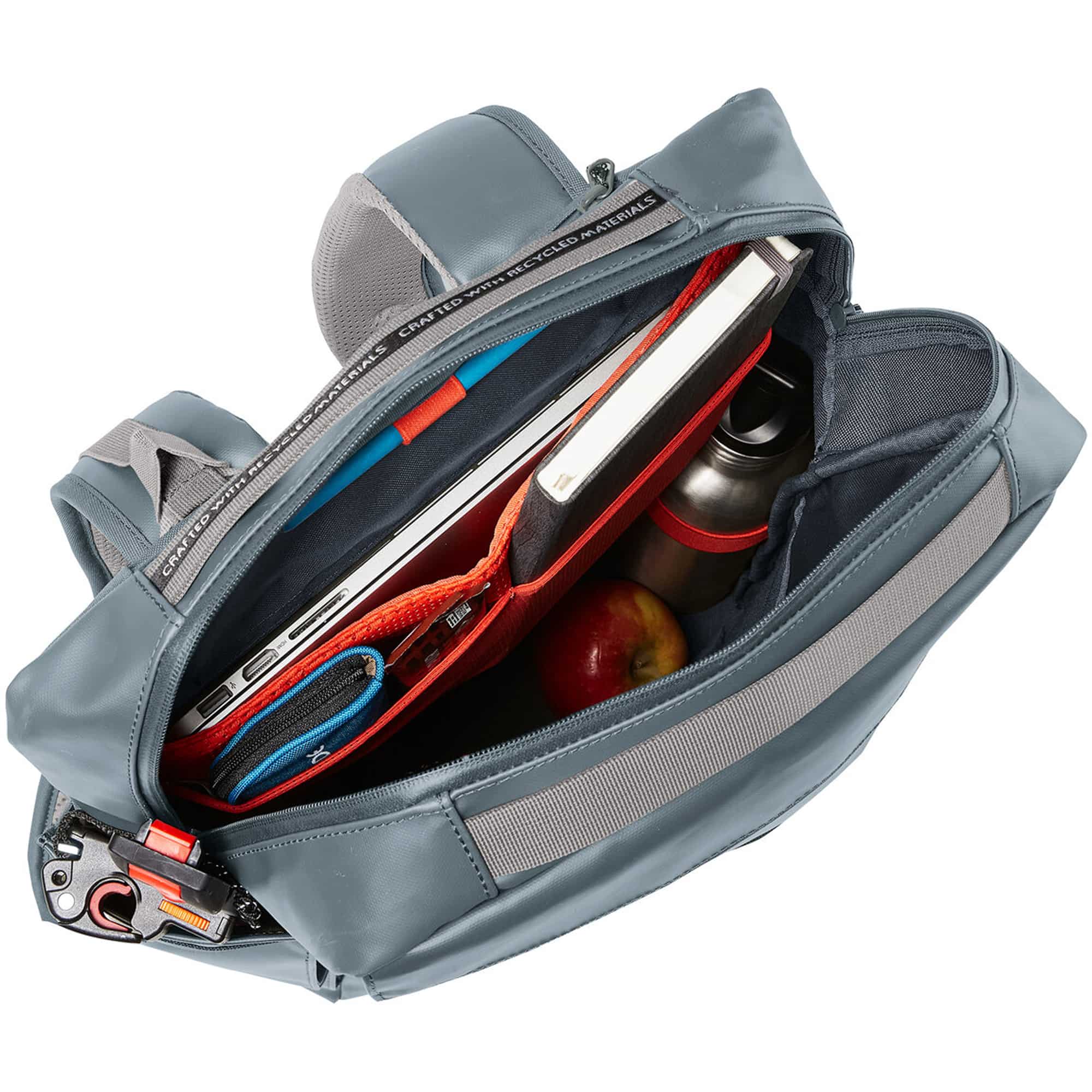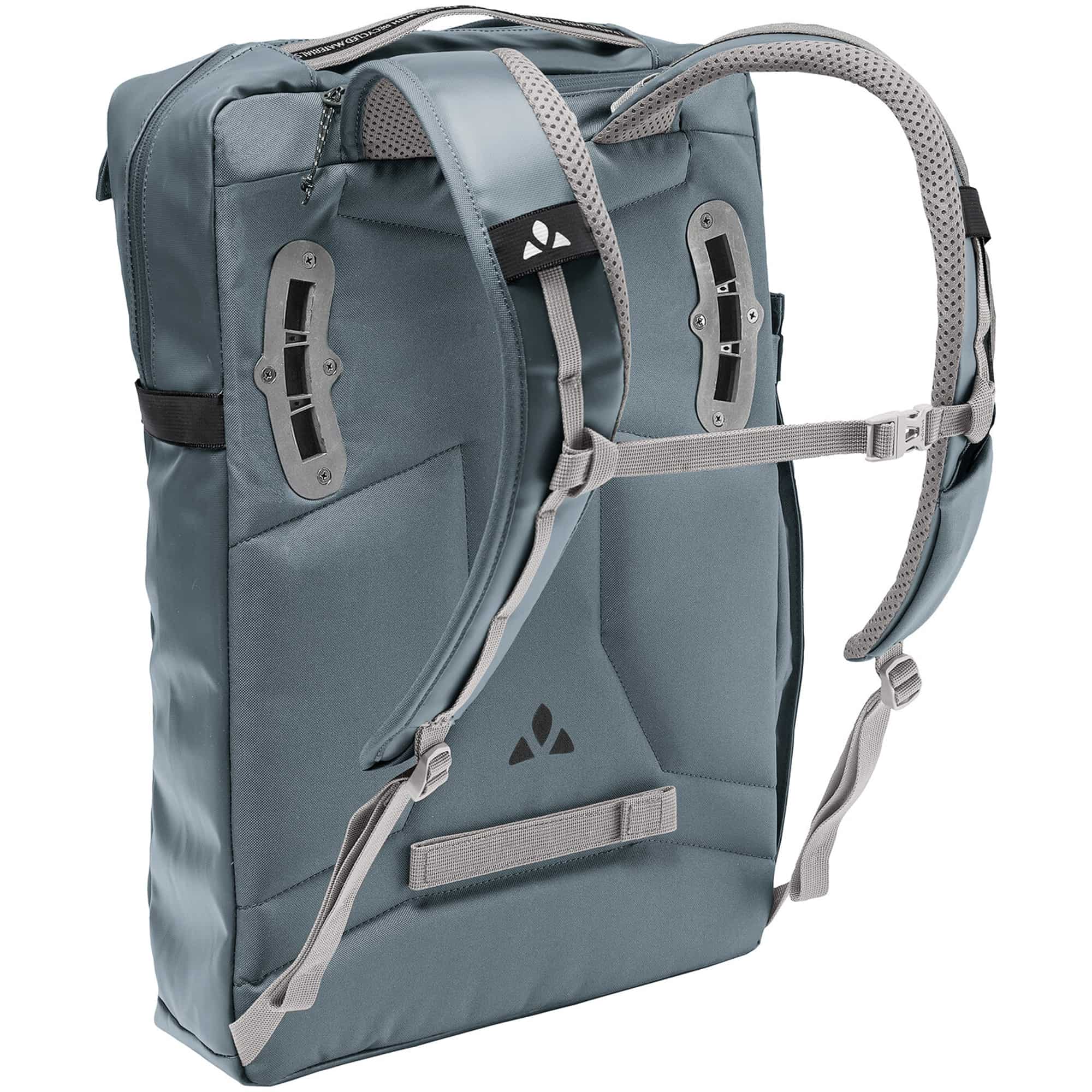 Der Mineo Transformer 20 L Fahrradrucksack von Vaude ist ein vielseitiger, PVC-freier Rucksack, der sich als Fahrradtasche, Business-Rucksack und Trolley-Aufsatz nutzen lässt. Die abnehmbare Plug and Ride-Befestigungsschiene ermöglicht einfaches Anklippen und Abnehmen am Gepäckträger und kann bei Bedarf im Schnellverstaufach verstaut werden. Im Hauptfach befindet sich ein Einsteckfach für einen 15,6-Zoll-Laptop sowie Halterungen für Stifte und eine Getränkeflasche, ein Frontfach und ein Sicherheitsfach auf der Rückseite bieten schnellen Zugriff auf Handy, Dokumente und Unterlagen. Ein Schlüsselhalter am gepolsterten Schulterträger erleichtert das Türaufschließen, und das schmutzabweisende Material ist robust für den Alltag in der Stadt. Der Rucksack besteht aus bluesign-zertifiziertem Material und erfüllt mit dem Green Shape-Label die Kriterien für umweltfreundliche, funktionelle Produkte.