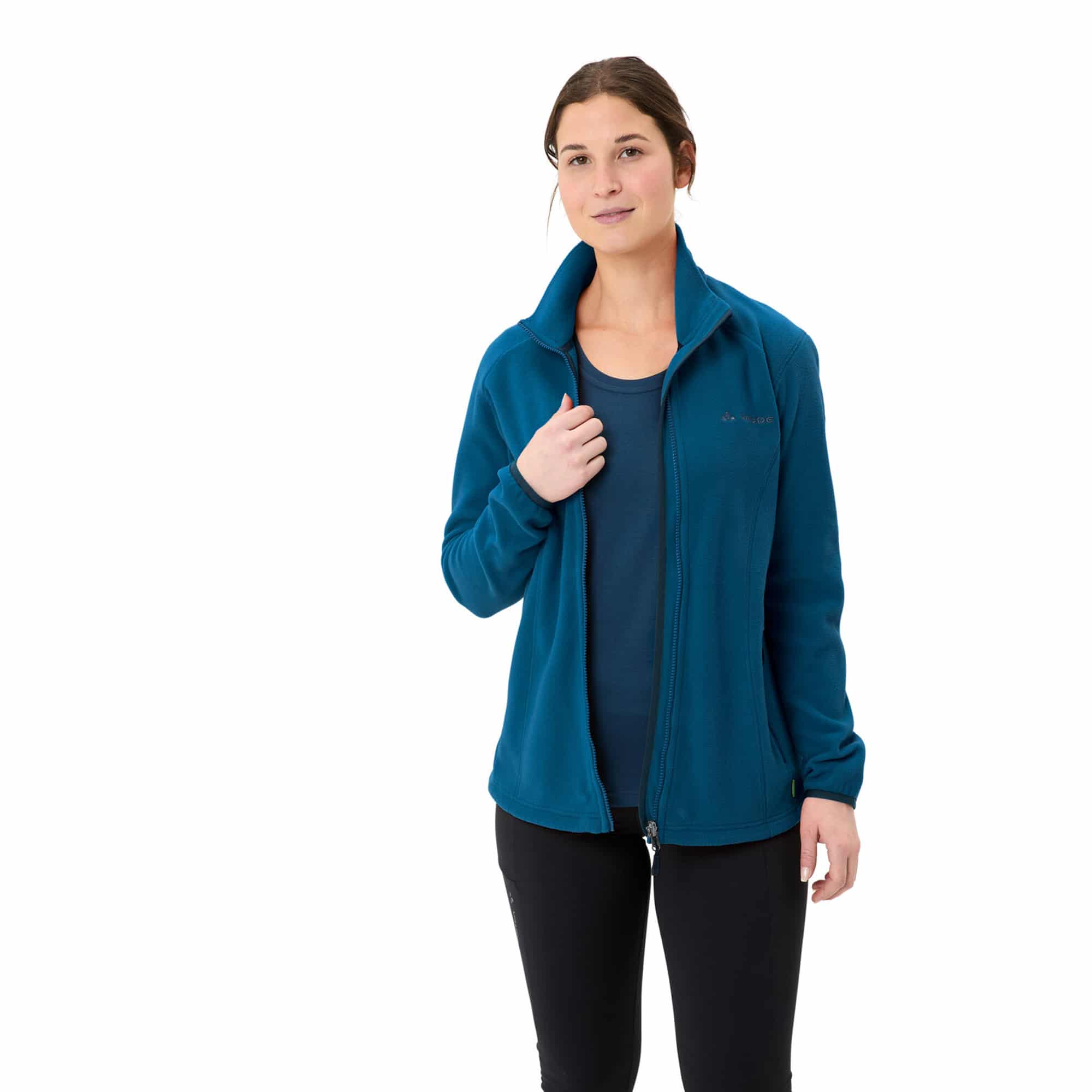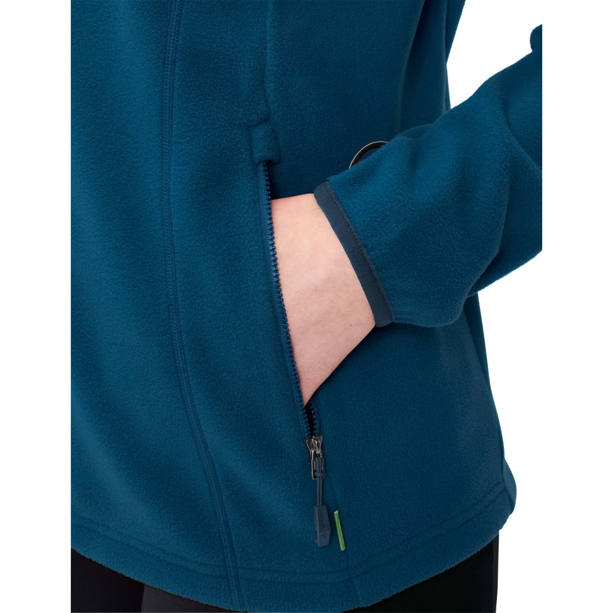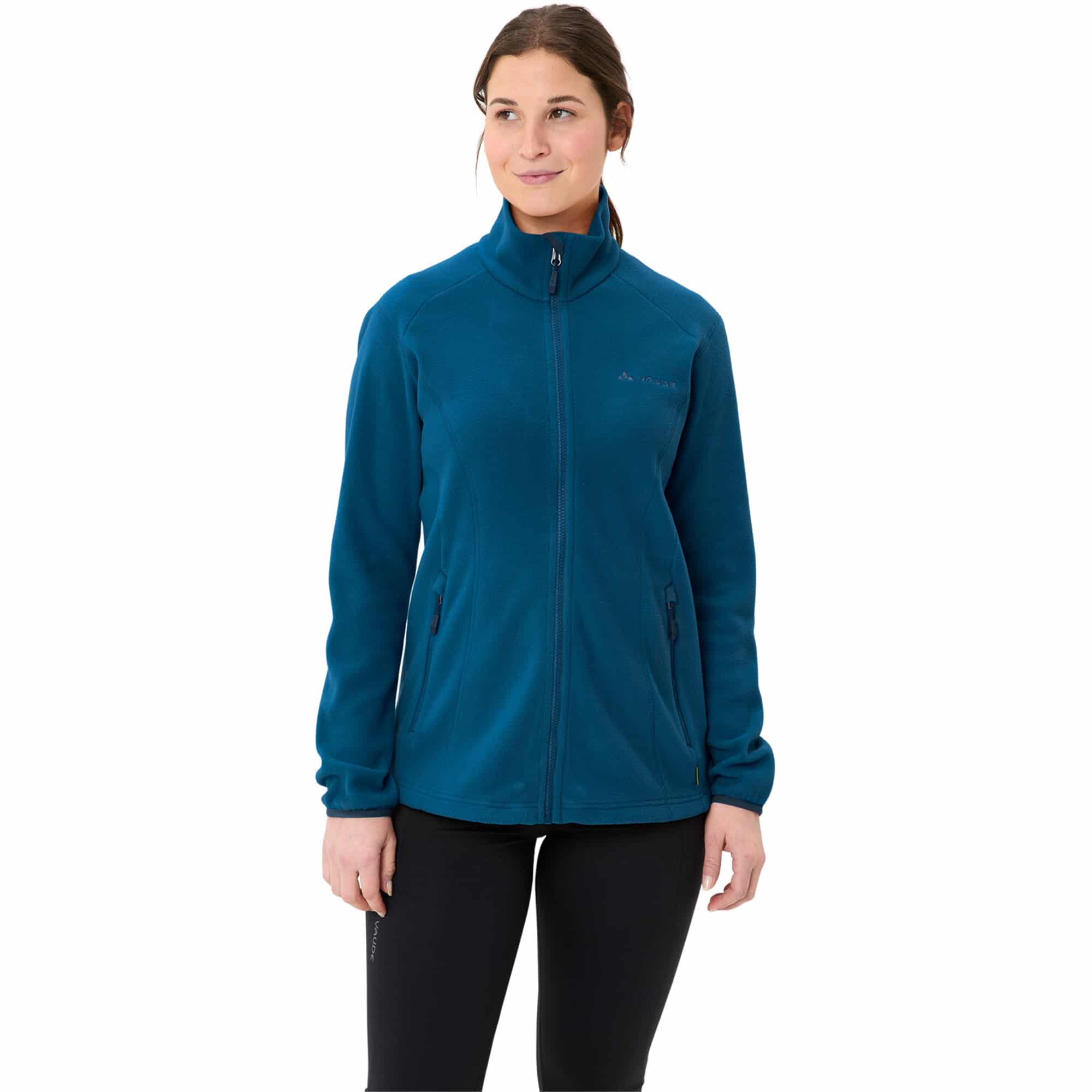 Die Vaude Rosemoor II für Damen ist eine kuschelige Fleecejacke aus funktionellem Polartec®-Mikrofleece, perfekt für Wanderungen oder entspannte Outdoor-Tage. Das Material besteht zu 100 % aus recyceltem Polyester, was sie besonders nachhaltig macht. Durch den durchgehenden Reißverschluss, die Fronttaschen und den Kordelzug im Saum lässt sie sich vielseitig einsetzen und an den Körper anpassen.