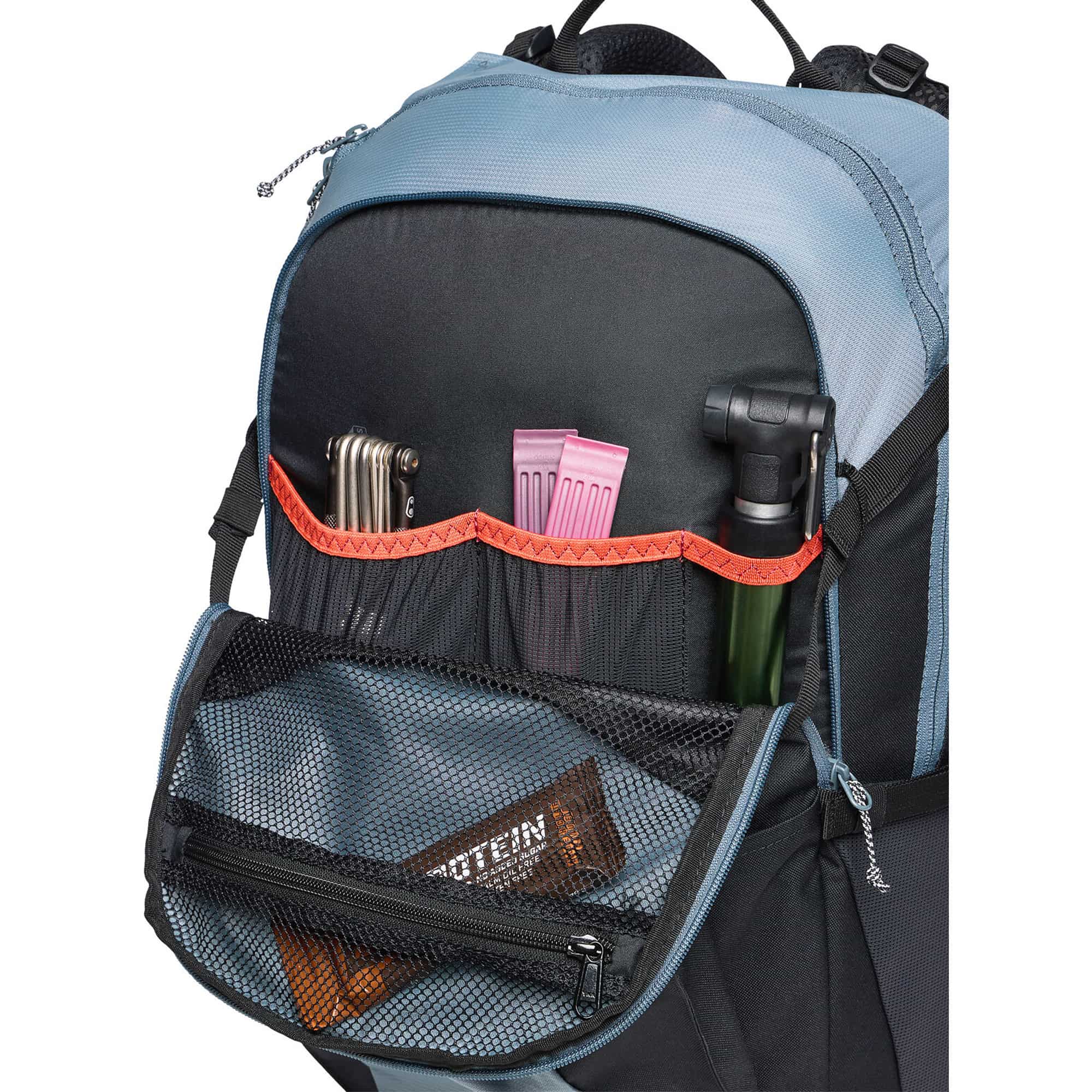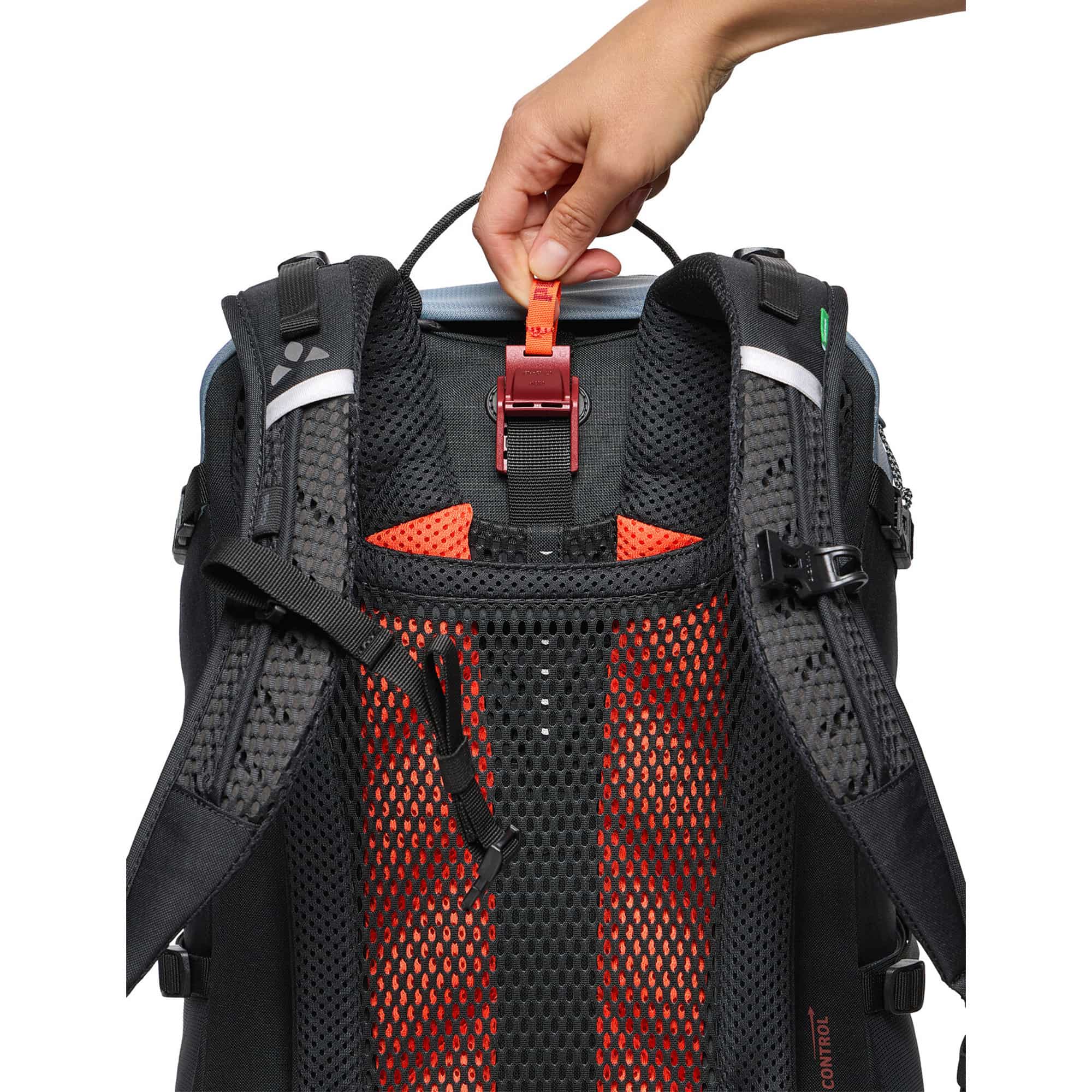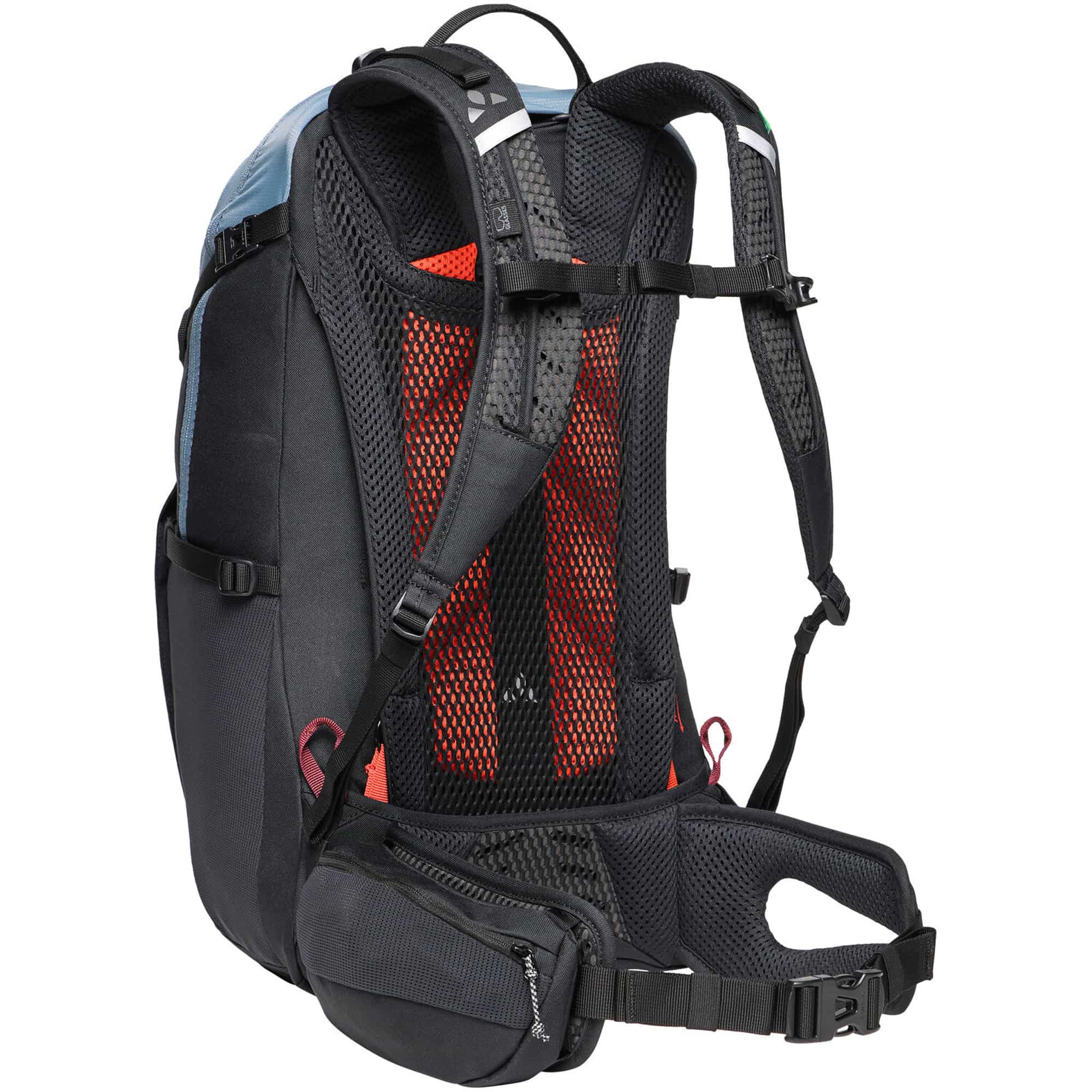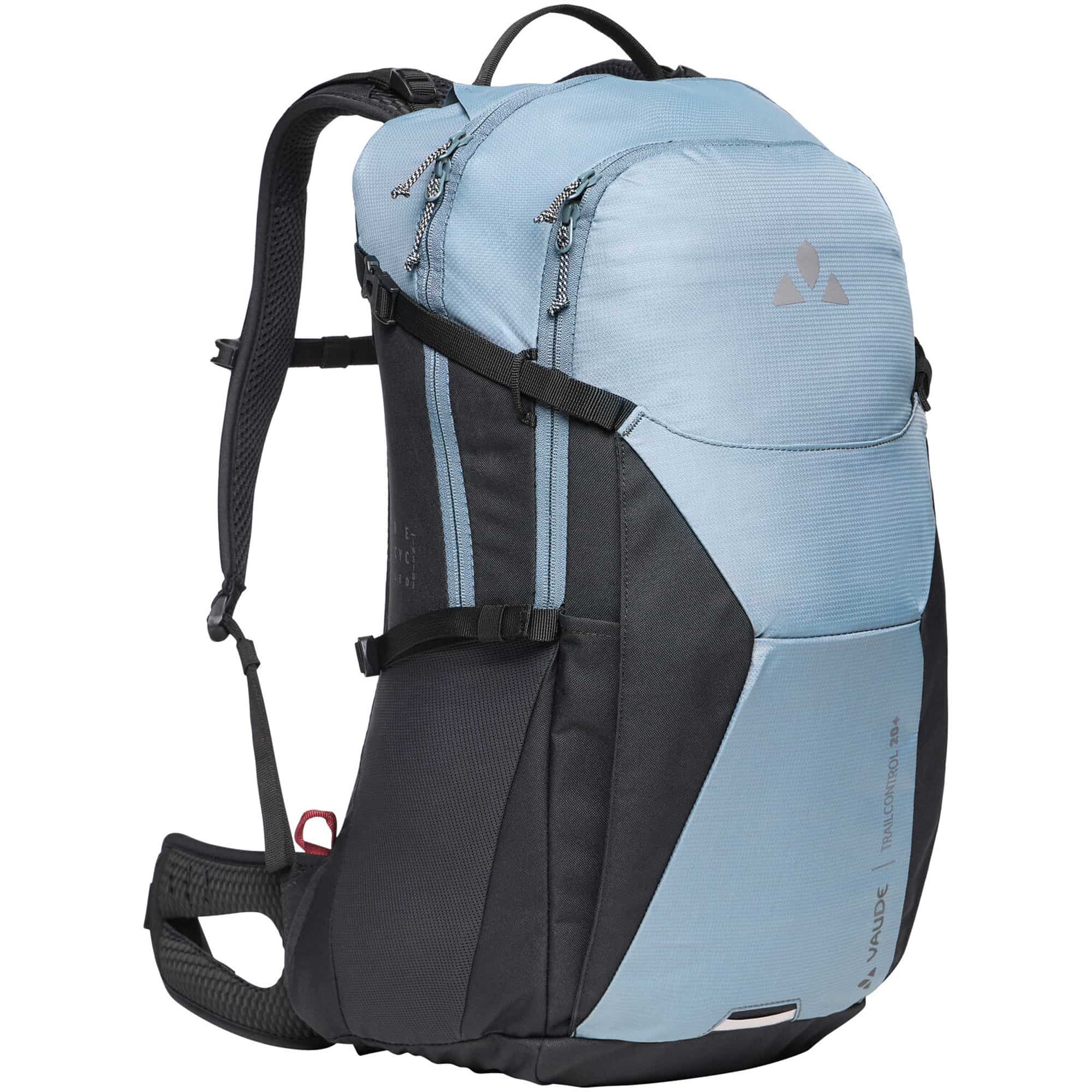 Der TrailControl 20+ Fahrradrucksack mit erweiterbarem Volumen ist der ideale Begleiter für anspruchsvolle Mountainbike-Touren und überzeugt durch durchdachte Funktionalität, hohen Tragekomfort und nachhaltige Materialien. Das innovative Aeroflex Control Tragesystem ermöglicht einen schnellen Wechsel zwischen körpernahem Sitz für optimale Kontrolle auf dem Trail und einem belüfteten Rücken für angenehme Luftzirkulation bei intensiven Anstiegen, während die stufenlos anpassbare Rückenlänge und ergonomisch geformte Schultergurte eine individuelle Passform und maximale Bewegungsfreiheit garantieren. Das geräumige Hauptfach, praktische Organizer-Elemente, ein separates Werkzeugfach sowie Netz-Seitentaschen und ein gepolsterter Hüftgurt mit Tasche sorgen für perfekte Übersicht und schnellen Zugriff auf wichtige Ausrüstung, ergänzt durch Features wie Helmhalterung mit Zusatzfunktion, Trinksystemvorbereitung, Kompressionsriemen, Brustgurt, Schlüsselhalter und reflektierende Details für mehr Sicherheit. Gefertigt aus recyceltem Polyester aus PET-Flaschen und ausgestattet mit einer umweltfreundlichen, wasser- und schmutzabweisenden Eco Finish Imprägnierung steht dieser vegane Fahrradrucksack für ressourcenschonende Performance und Langlebigkeit und ist damit die perfekte Wahl für alle, die beim Biken Wert auf Komfort, Organisation und Nachhaltigkeit legen.