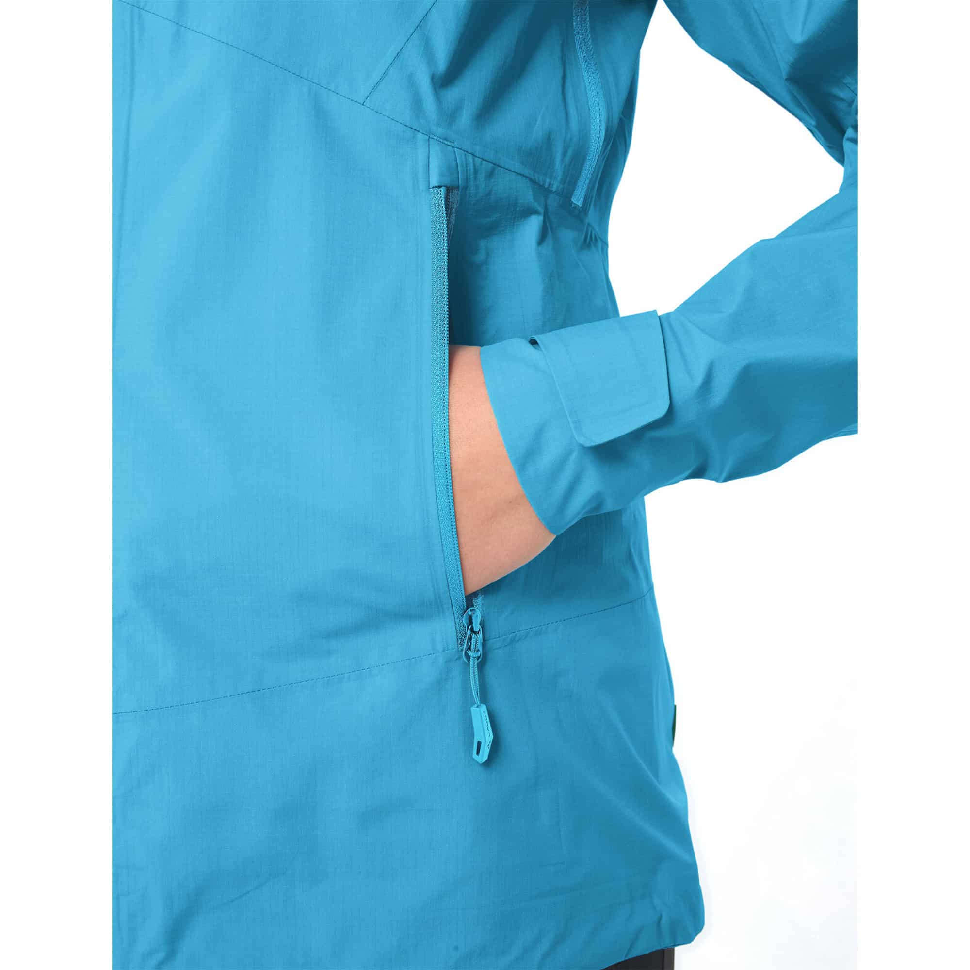 Die Simony V 2,5-Lagen-Regenjacke für Damen ist der ideale Begleiter für jede Bergtour, selbst an warmen Sommertagen. Sie schützt zuverlässig vor plötzlichen Gewittern und Wind am Gipfel, wodurch du während der Pause nicht auskühlst. Mit einer Wasserdichtigkeit von mindestens 20.000 Millimetern und extremer Atmungsaktivität bietet sie optimalen Schutz, während die innovative Konstruktion für ein geringes Gewicht und eine kompakte Transportgröße sorgt. Die Eco Finish PFC-freie Ausrüstung macht den Oberstoff nicht nur wasser- und schmutzabweisend, sondern auch umweltfreundlich. Dank der vorgeformten Ärmel hast du volle Bewegungsfreiheit, während sich die Kapuze und der Bund zum Schutz vor Wind eng schließen lassen. Strategisch platzierte Unterarmventilation garantiert zusätzlichen Komfort bei wechselnden Bedingungen. Der Stauraum in den zwei Reißverschlusstaschen ist perfekt für deine Essentials. Mit dem VAUDE Green Shape-Label setzt du auf Nachhaltigkeit und Funktionalität – so kannst du dich ganz auf dein Abenteuer konzentrieren.
