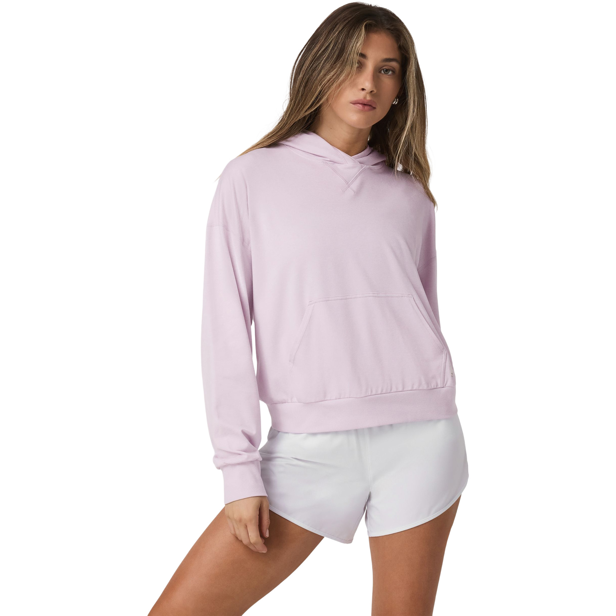 Dieser Hoodie besticht durch sein weiches, elastisches DreamKnit™‑Material mit 4‑Wege‑Stretch, das maximale Bewegungsfreiheit und angenehmen Tragekomfort bietet - ideal für Alltag, Yoga oder entspanntes Relaxen. Der locker‑weite Schnitt mit lässigem „Relaxed Fit“ und die klassische Hoodie‑Silhouette machen ihn zum vielseitigen Allrounder für Freizeit oder Sport. Die große Kapuze und die praktische Kängurutasche bieten Komfort und Funktionalität, während die feuchtigkeitsableitende Materialmischung für ein frisches Gefühl sorgt - selbst bei Wärme oder Bewegung. Mit dem cleanen Design und der nachhaltigen Materialwahl verbindet der Hoodie Komfort, Stil und Alltagstauglichkeit mühelos.